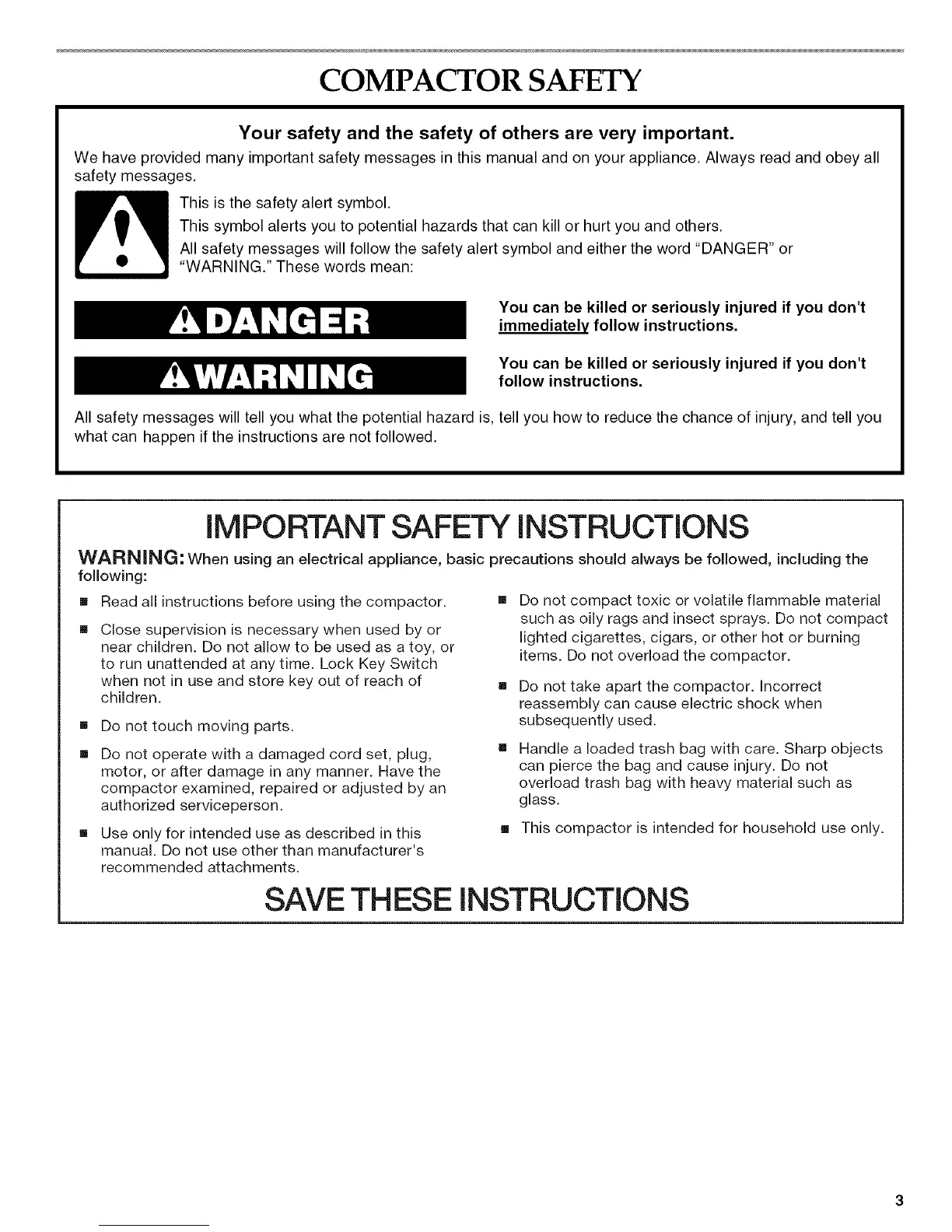 [] Read all instructions before using the compactor. []