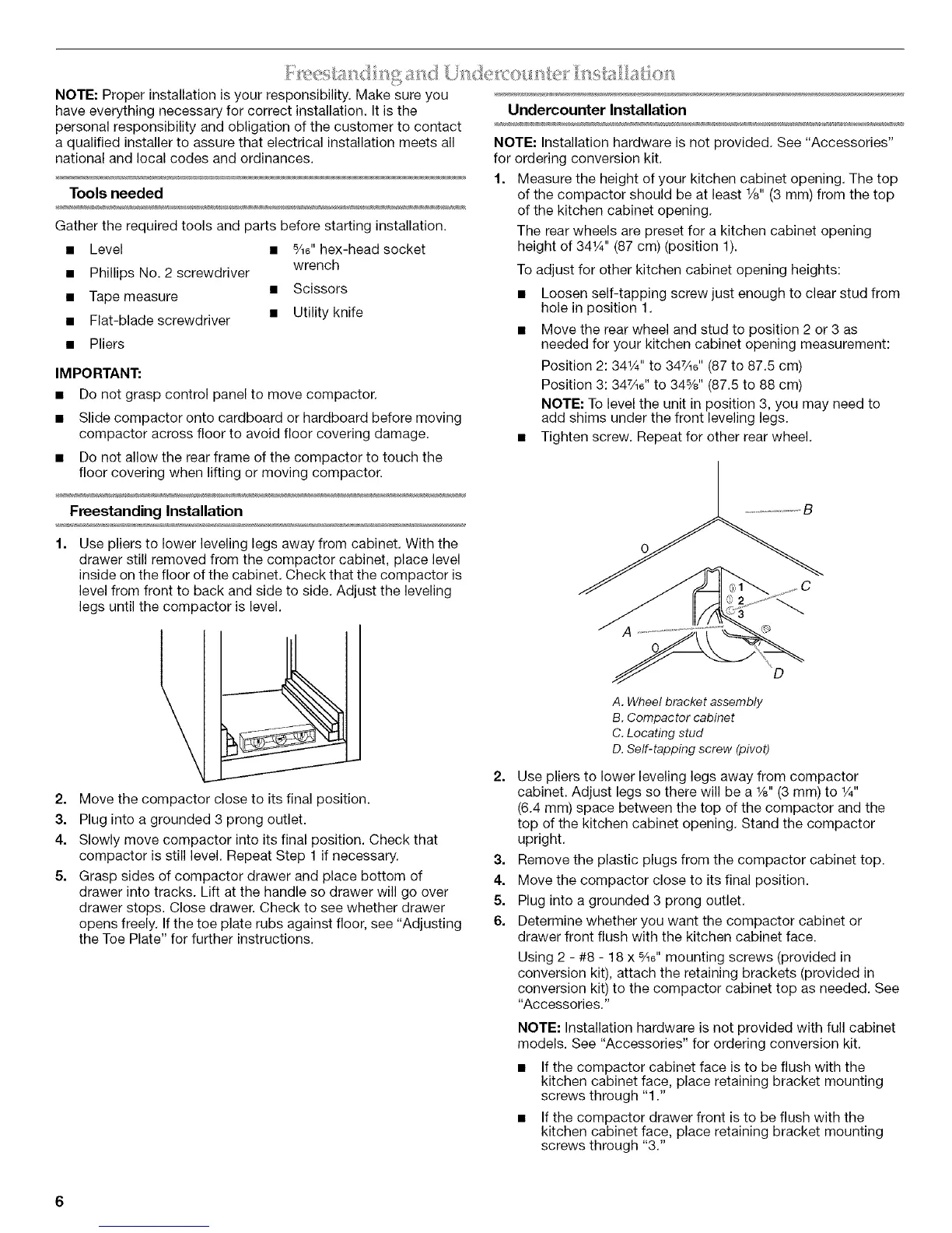 cabinet. Adjust legs so there will be a Y6"(3 mm) to %"