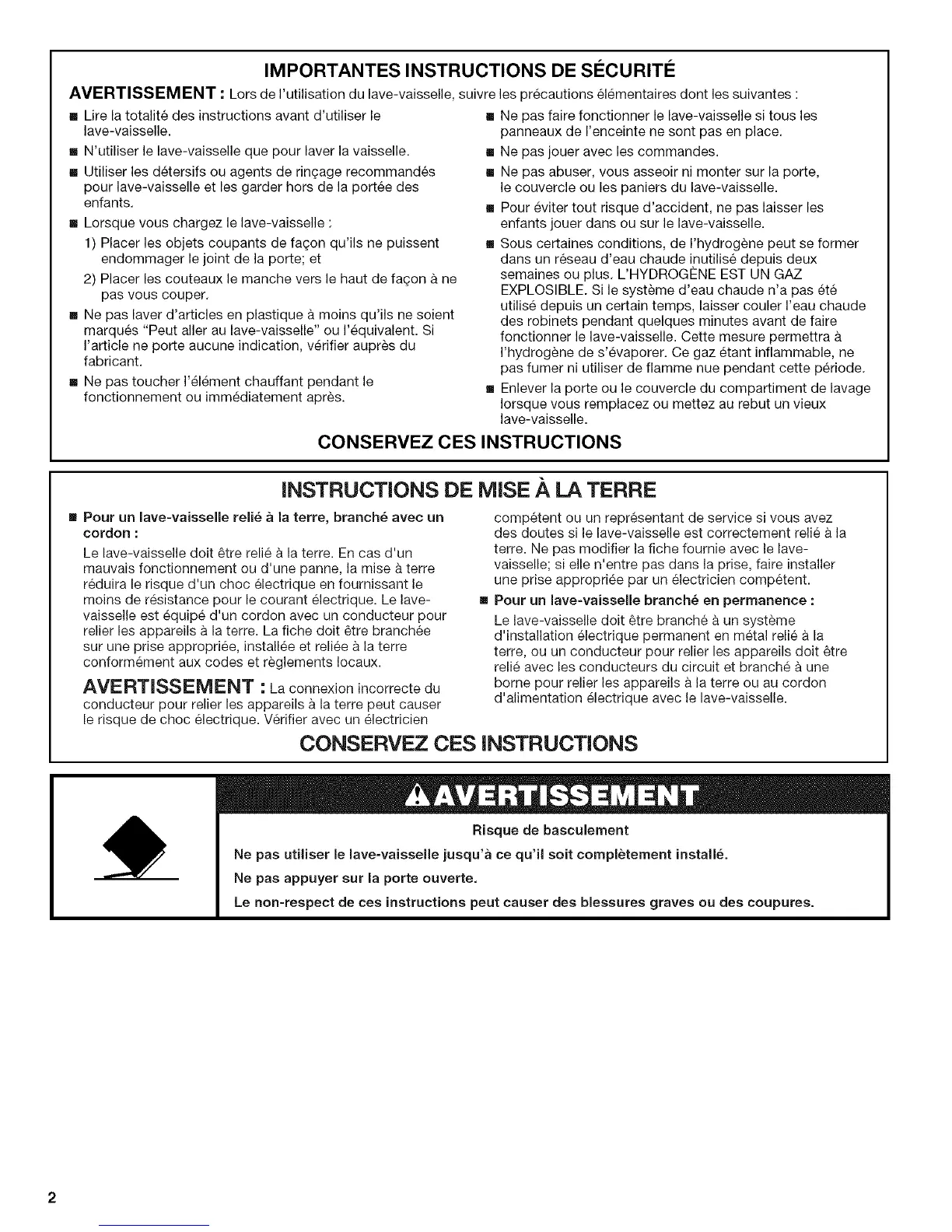 [] Lire la totalite des instructions avant d'utiliser le [] Ne pas faire fonctionner le lave-vaisselle si tousles
