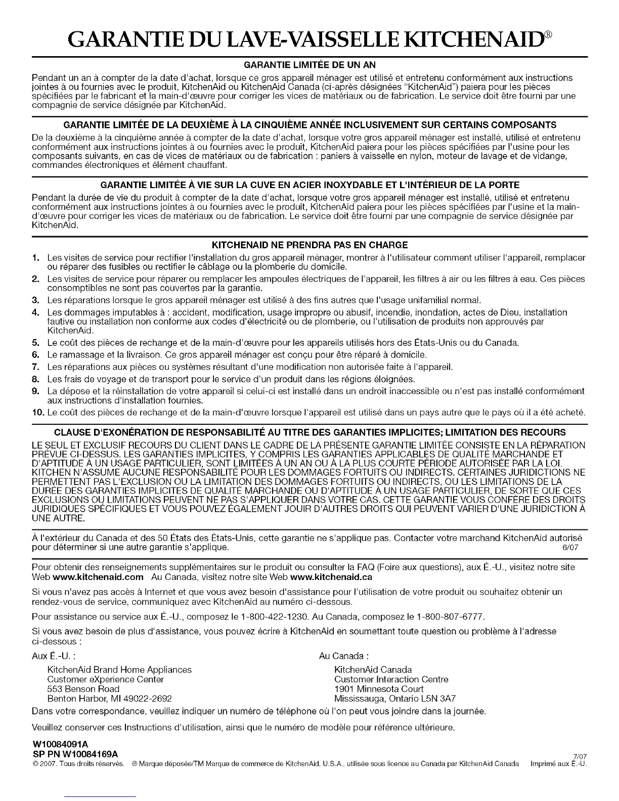 © 2007. Tous droits reserves. ® Marque d_pos_efTM Marque de commerce de KitchenAid U.S.A., utilisee sous licence au Canada par KitchenAid Canada Imprim_ aux E.-U.