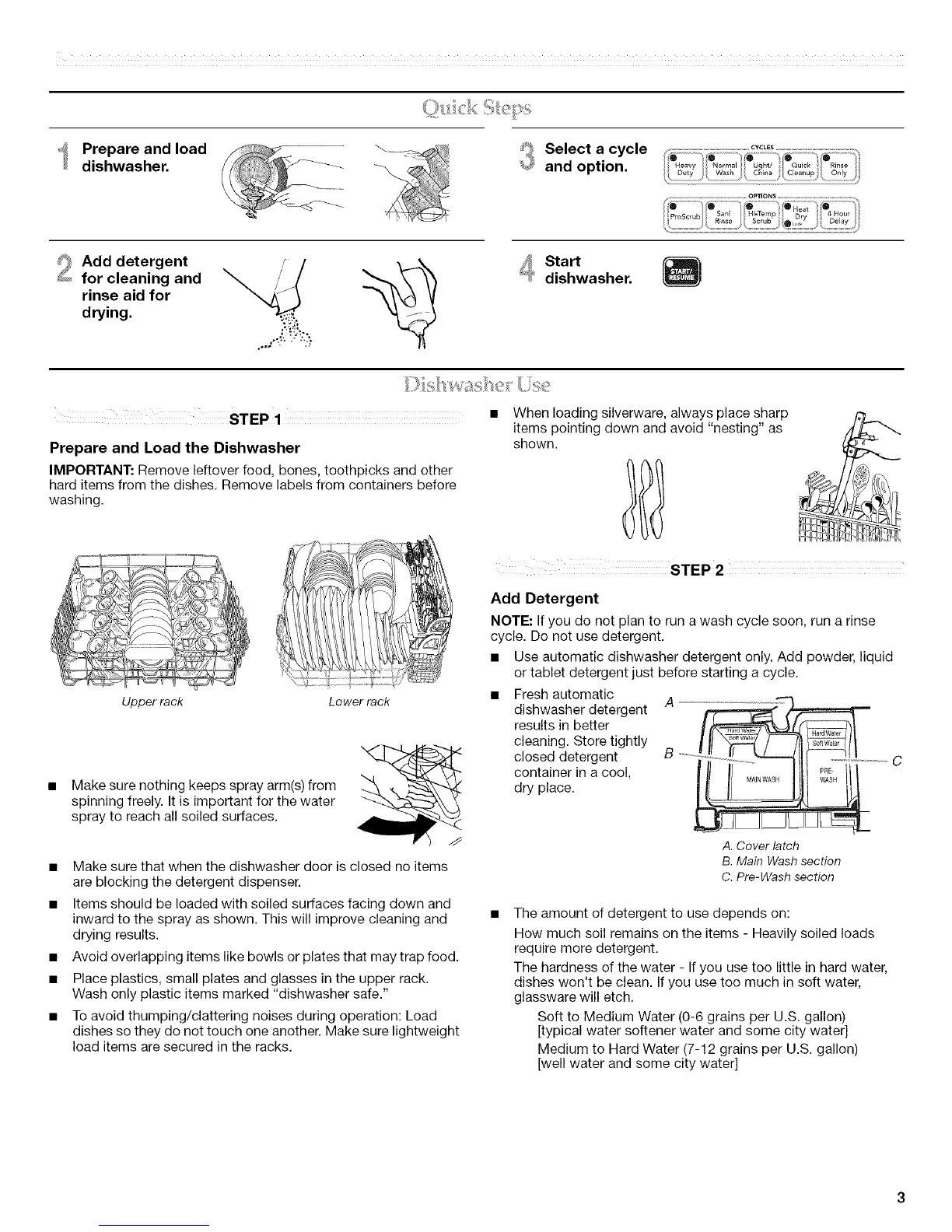 • Use automatic dishwasher detergent only. Add powder, liquid