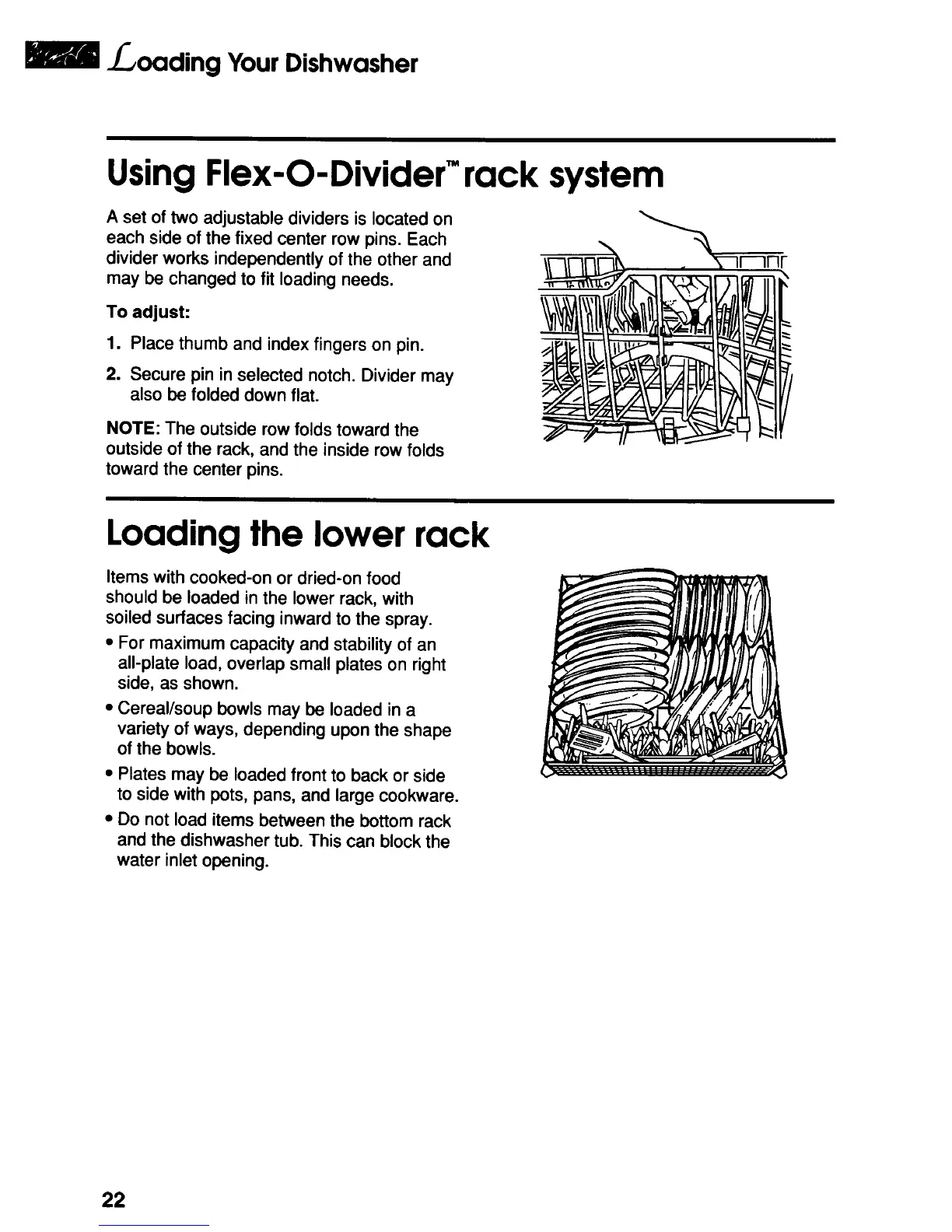 KitchenAid KUDA23SB - Using Flex-O-Divider Rack System; Loading the Lower Rack
