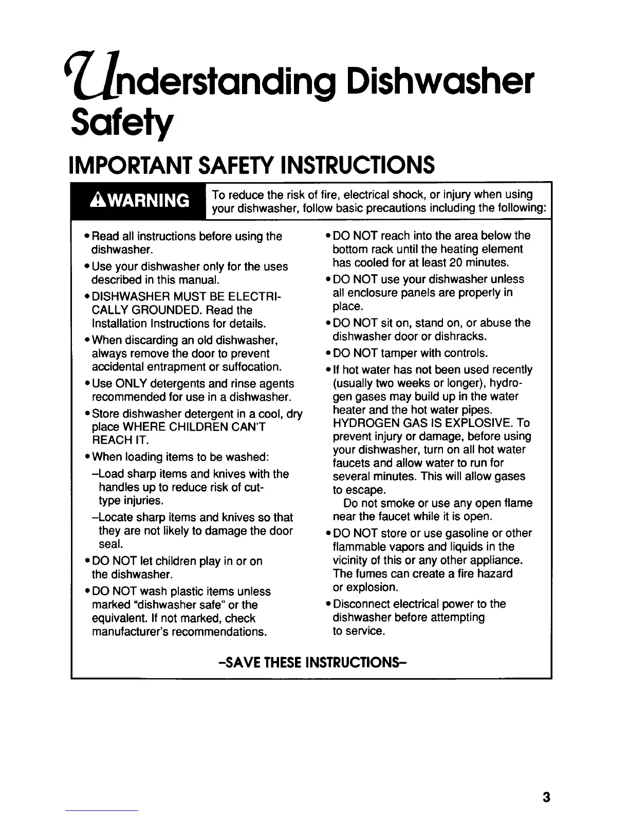 KitchenAid KUDA23SB - Understanding Dishwasher Safety; Important Safety Instructions