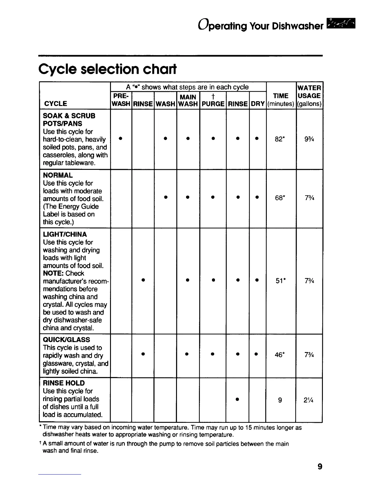 KitchenAid KUDA23SB - Cycle Selection Chart