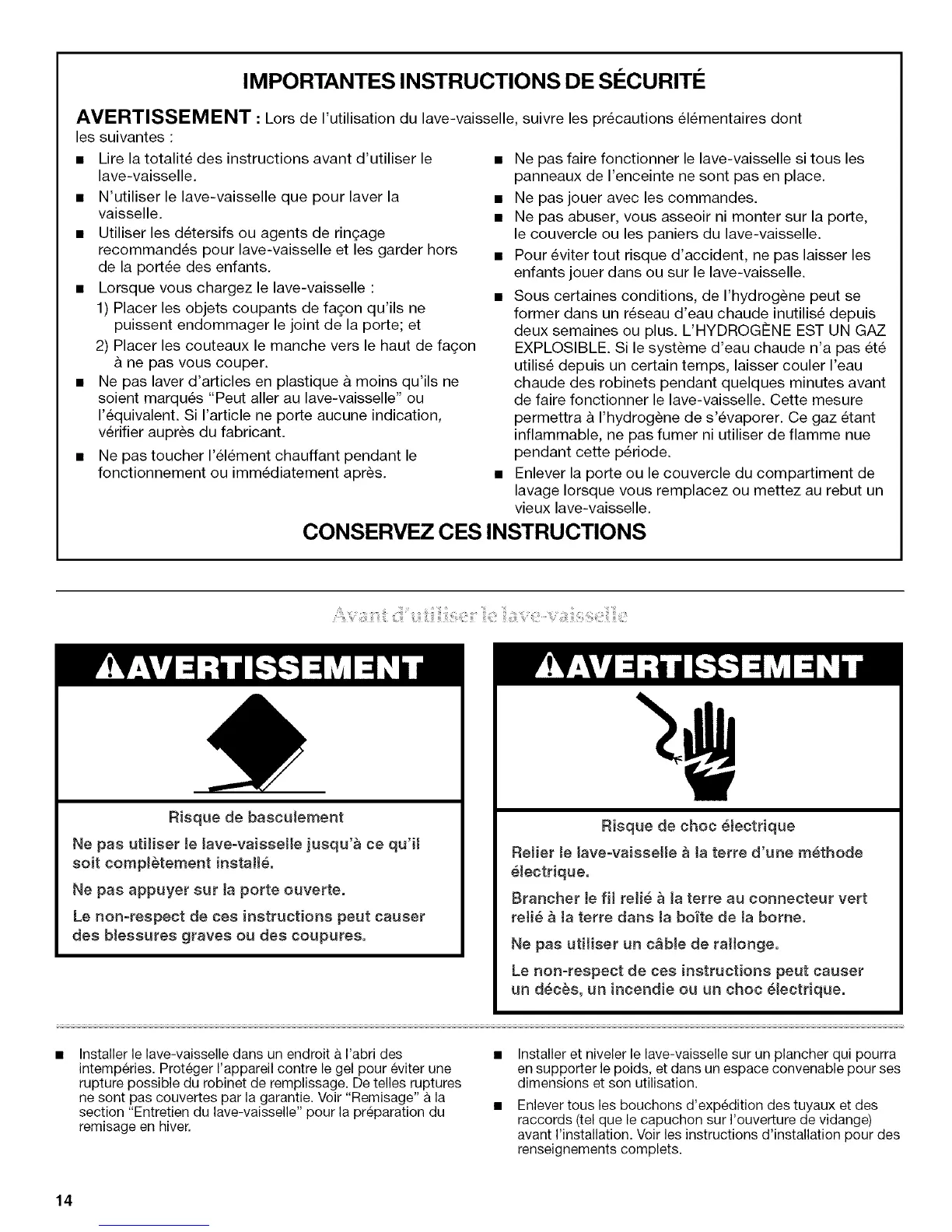 AVERTISSEMENT : Lors de I'utilisation du lave-vaisselle, suivre les precautions _l_mentaires dont