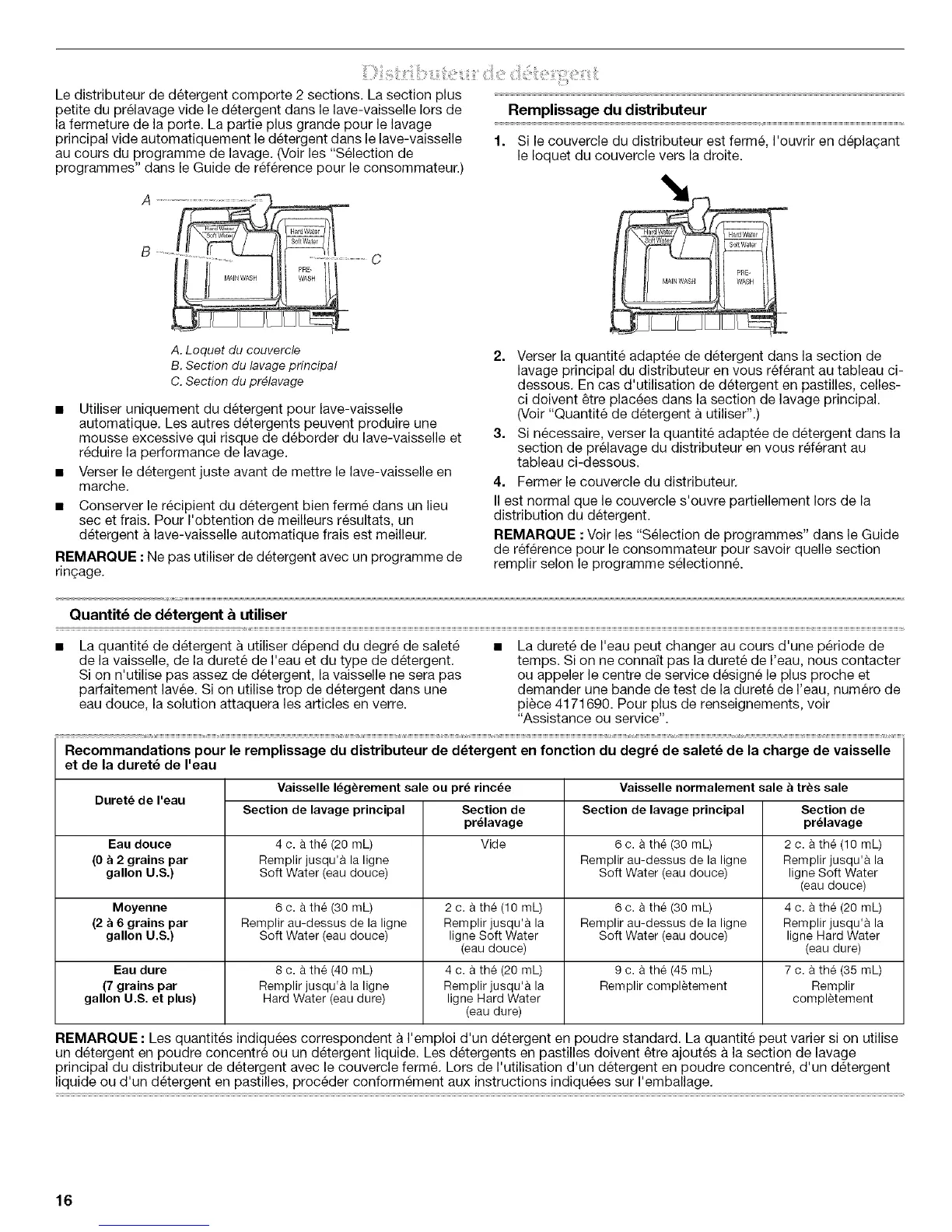 parfaitement lavee. Si on utilise trop de detergent dans une demander une bande de test de la durete de I'eau, numero de
