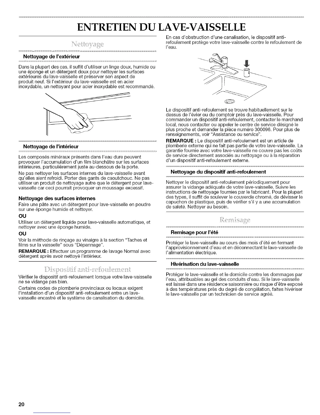 I'eau, attribuables au gel des conduits d'eau. Si le lave-vaisselle