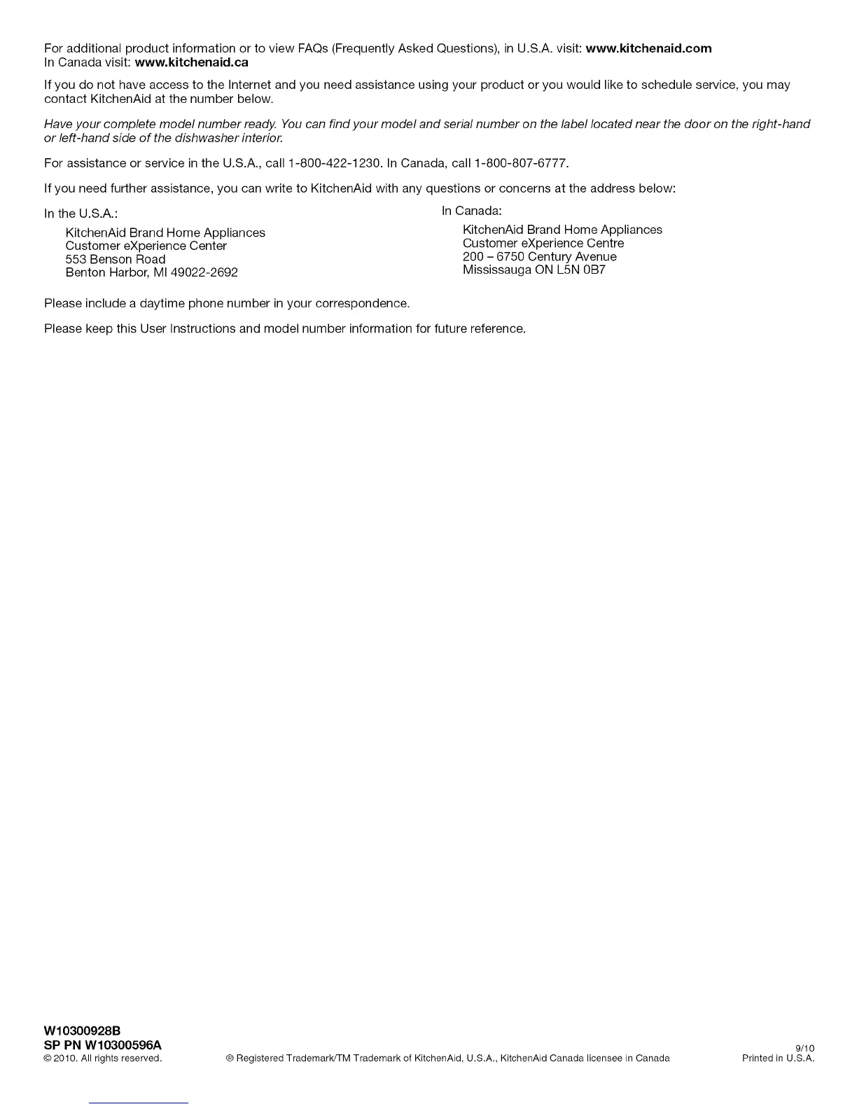 For additional product information or to view FAQs (Frequently Asked Questions), in U.S.A. visit: www.kitchenaid.com