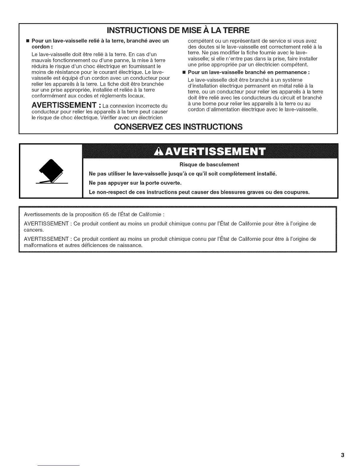 Ne pas utiliser le lave=vaisselle jusqu'a ce qu'il soit compl_tement installS.