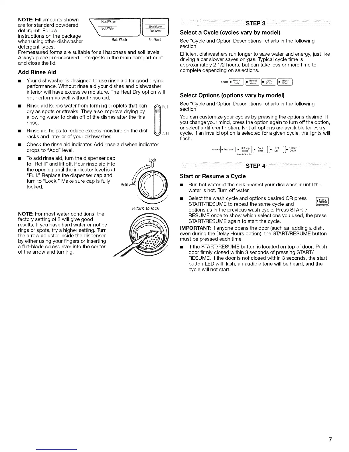 cycle. If an invalid option is selected for a given cycle, the lights will