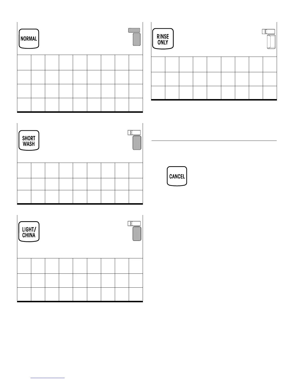CANCEL glows. The dishwasher pauses for 5 seconds and