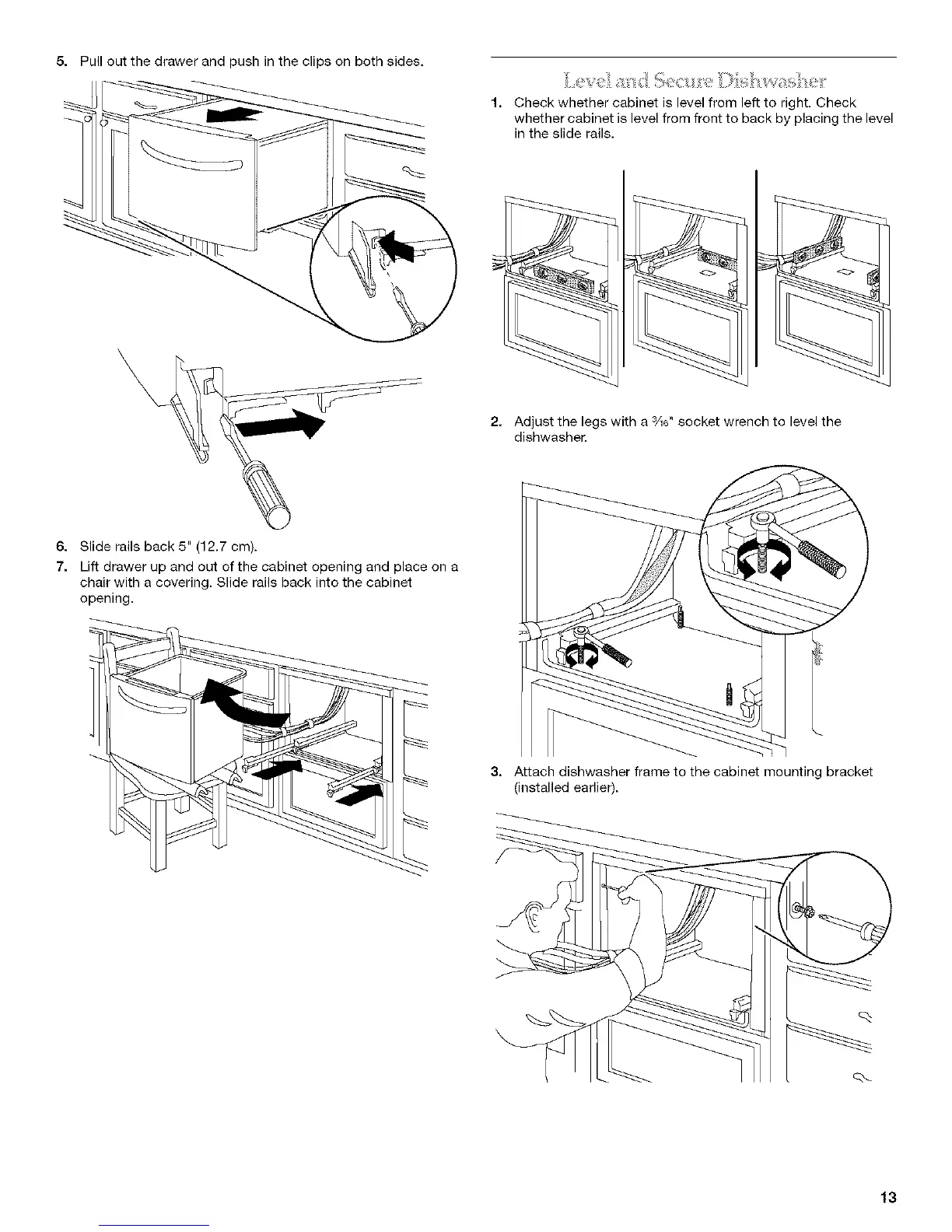 6. Slide rails back 5" (12.7 cm).