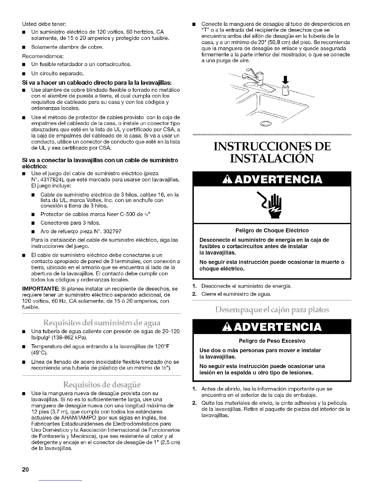 • Temperatura del agua entrando a la lavavajillas de 120°F