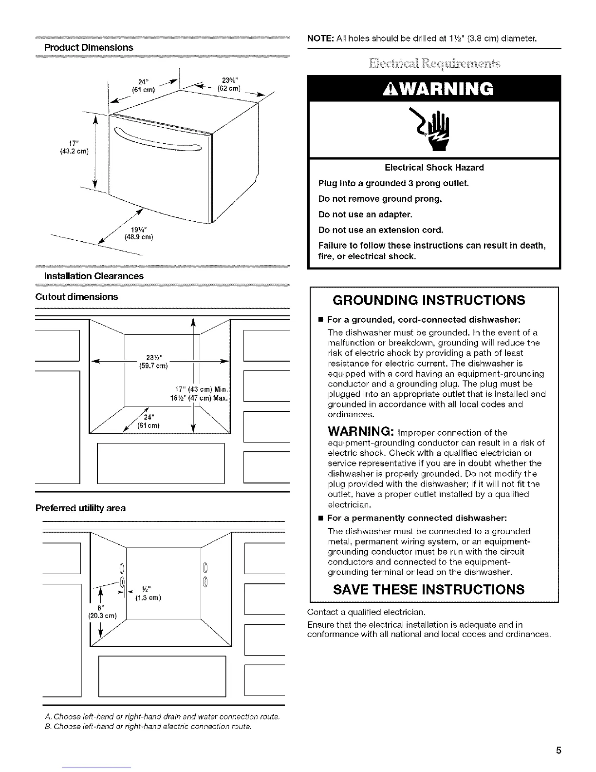 NOTE: All holes should be drilled at 11/2"(3.8 cm) diameter.