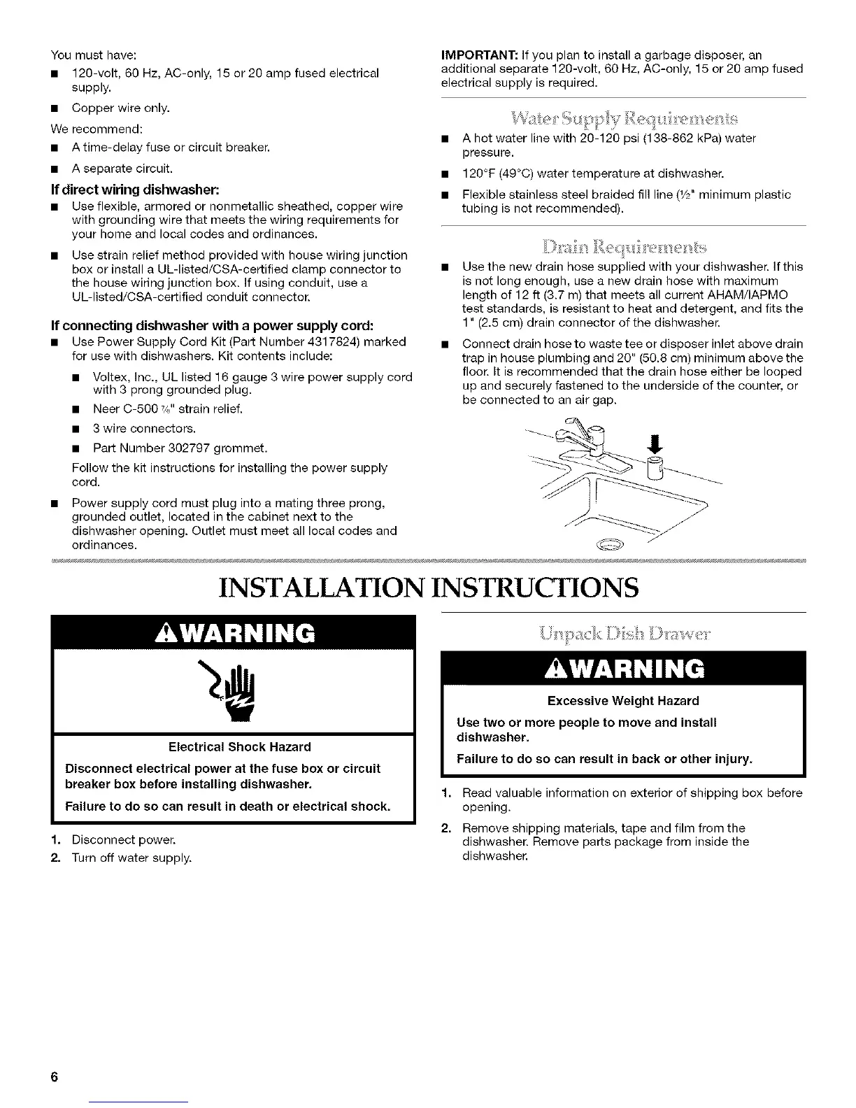 dishwasher opening. Outlet must meet all local codes and