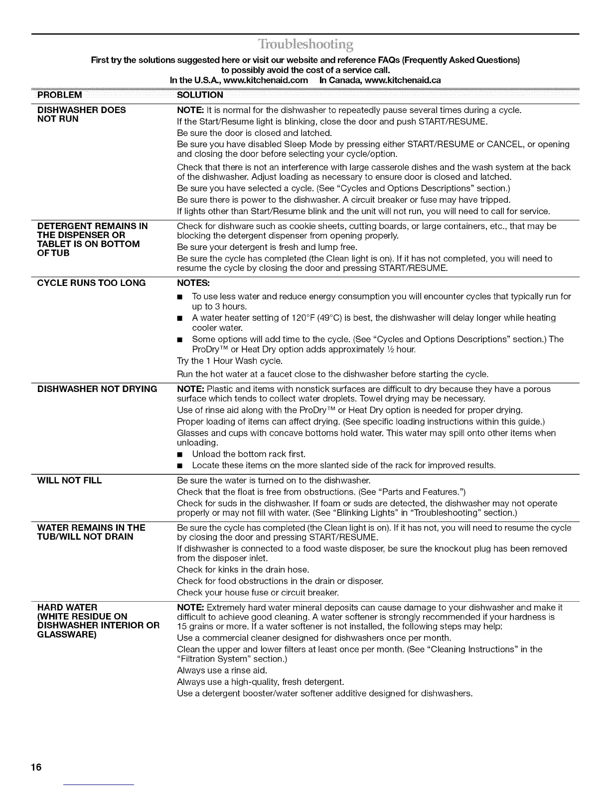 NOTE: Extremely hard water mineral deposits can cause damage to your dishwasher and make it