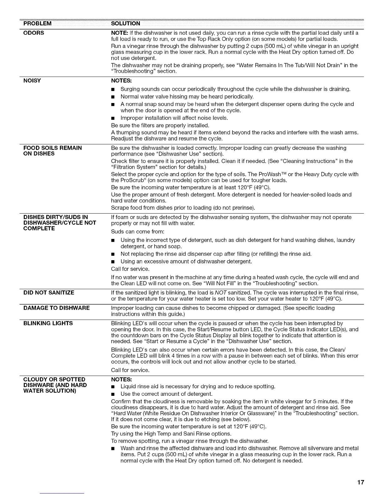 "Hard Water (White Residue On Dishwasher Interior Or Glassware)" in the "Troubleshooting" section.