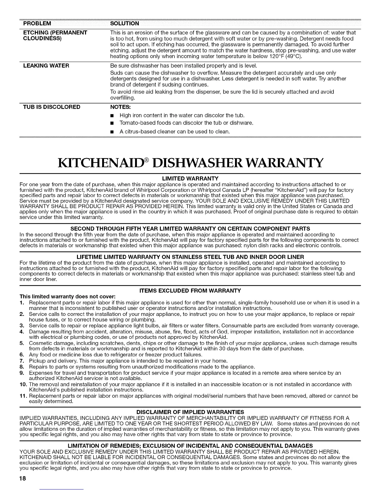 KITCHENAID SHALL NOT BE LIABLE FOR INCIDENTAL OR CONSEQUENTIAL DAMAGES. Some states and provinces do not allow the