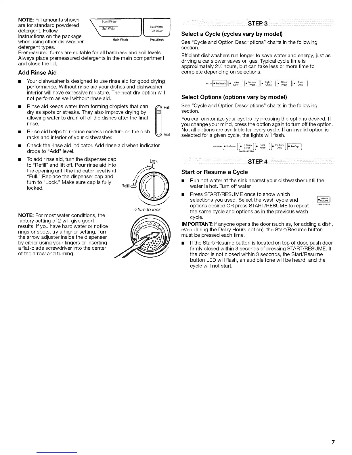 to "Refill" and lift off. Pour rinse aid into