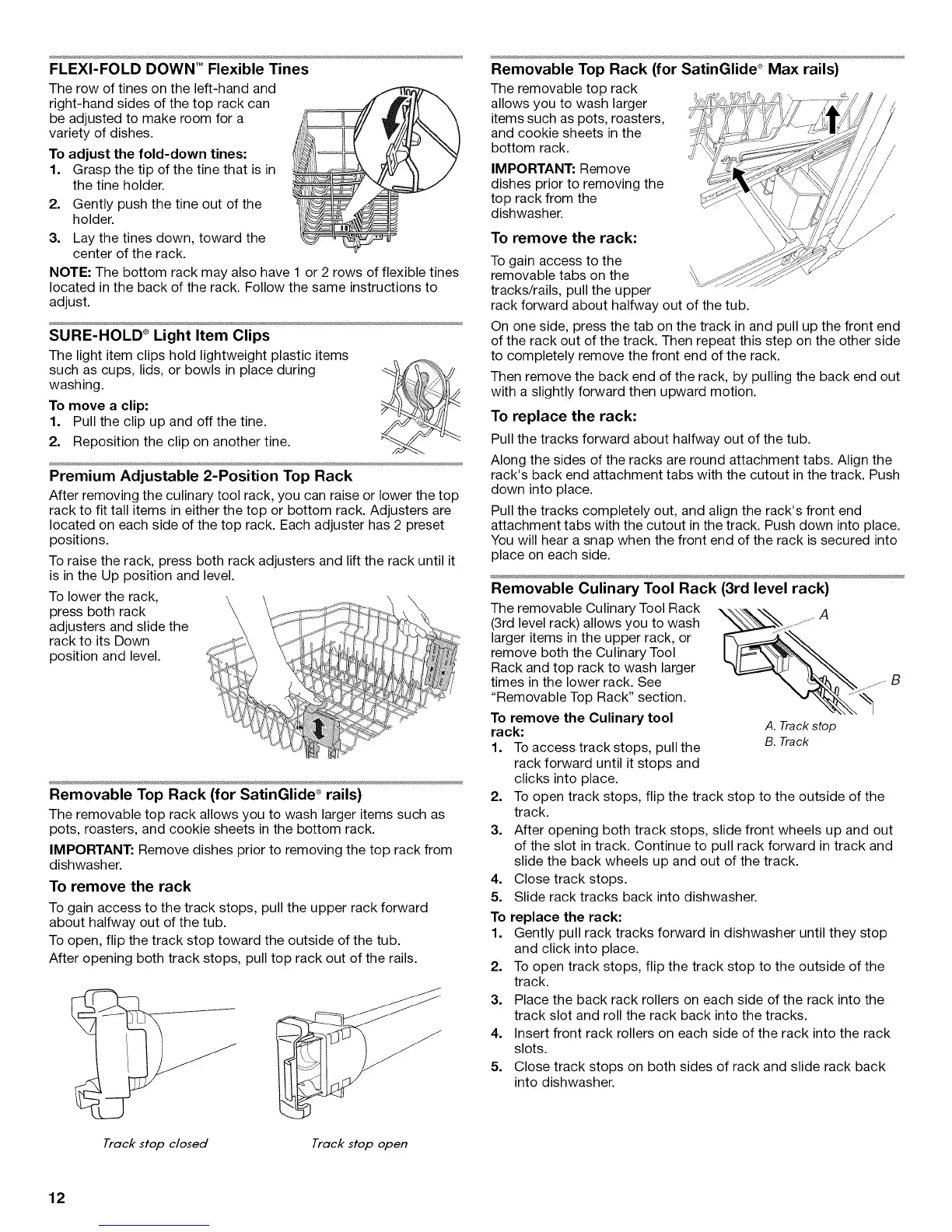 1. Gently pull rack tracks forward in dishwasher until they stop