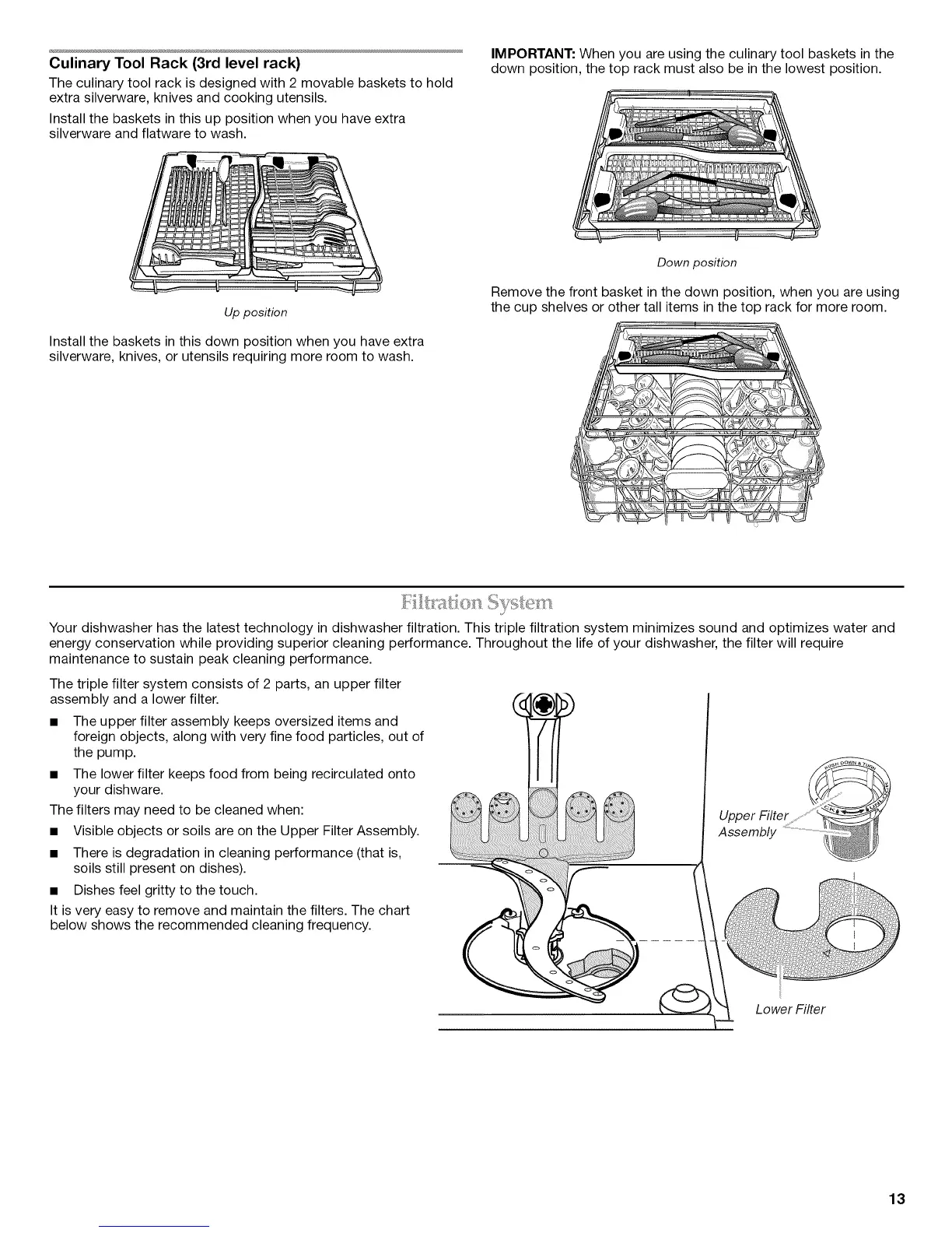 energy conservation while providing superior cleaning performance. Throughout the life of your dishwasher, the filter will require