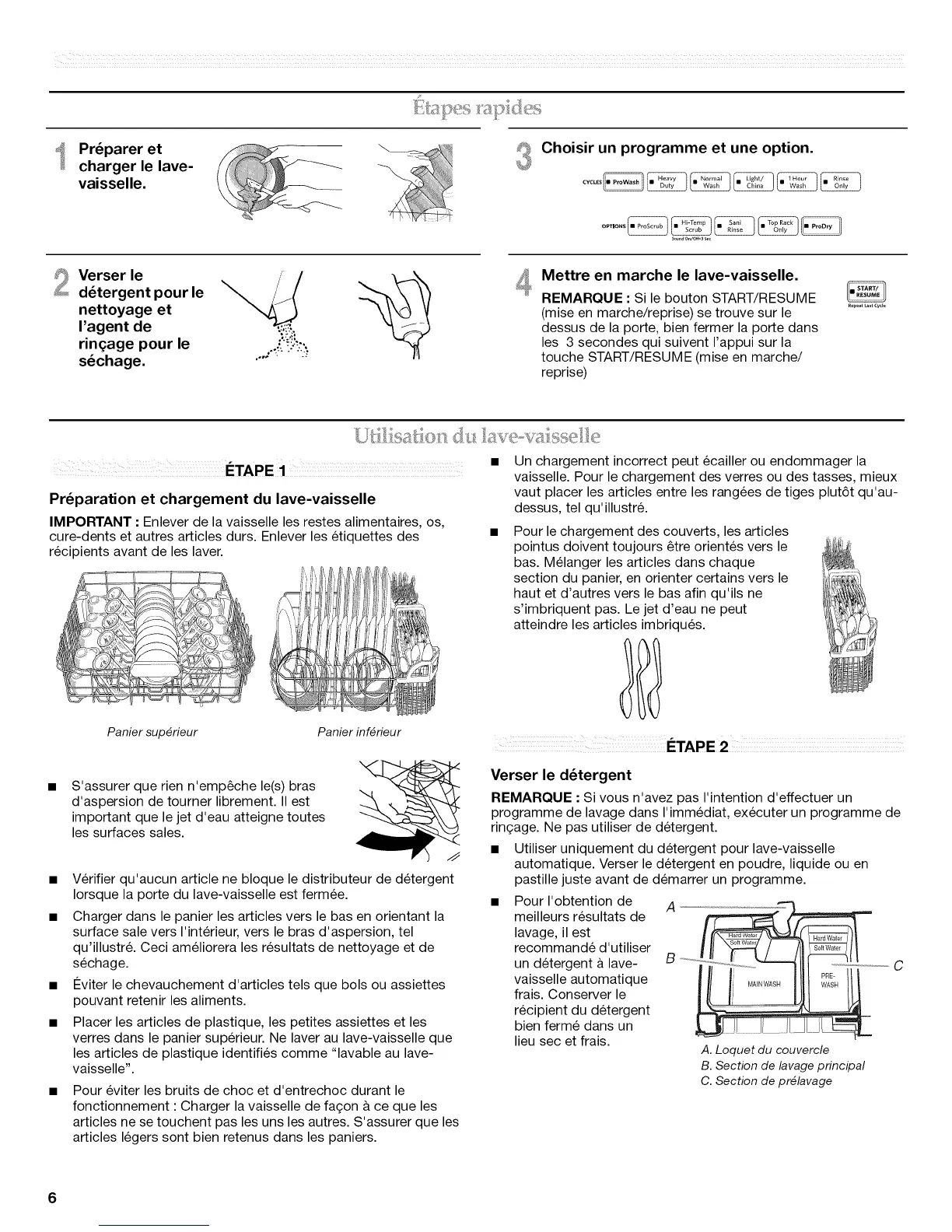 fonctionnement : Charger la vaisselle de fagon ace que les