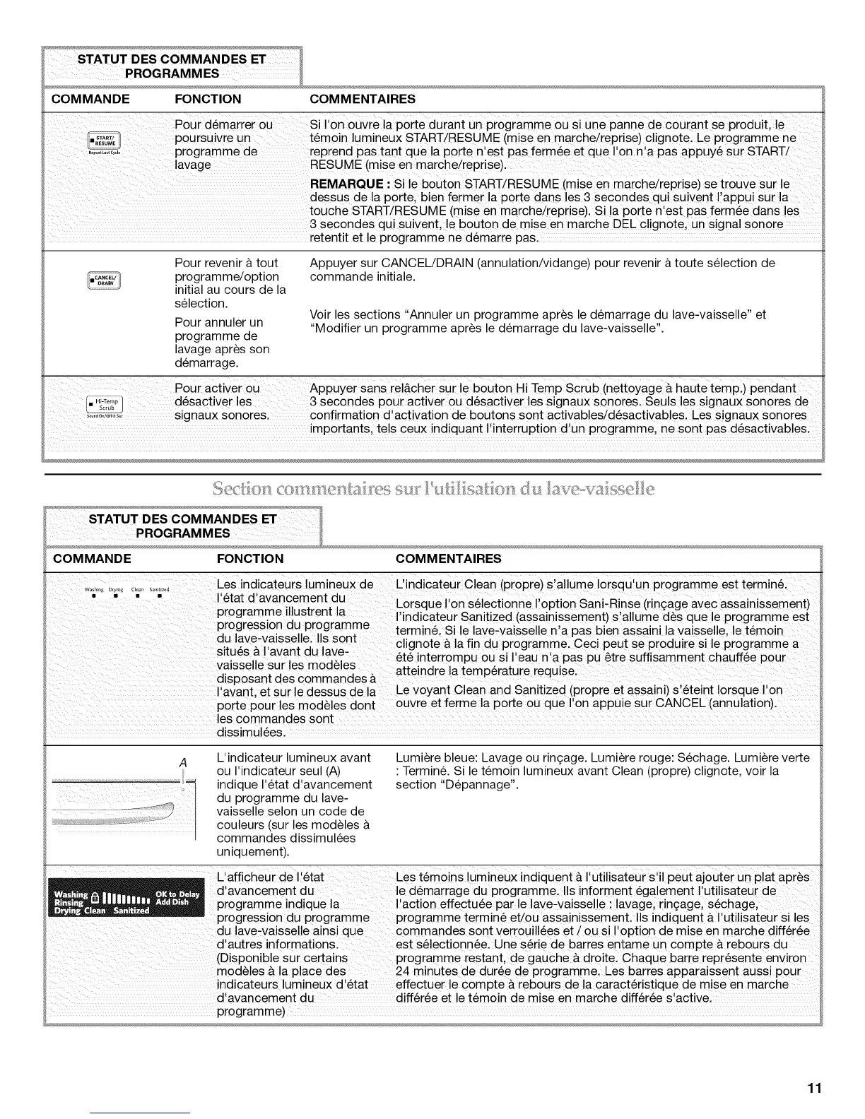 programme indique la I'action effectu6e par le lave-vaisselle : lavage, ringage, s6chage,