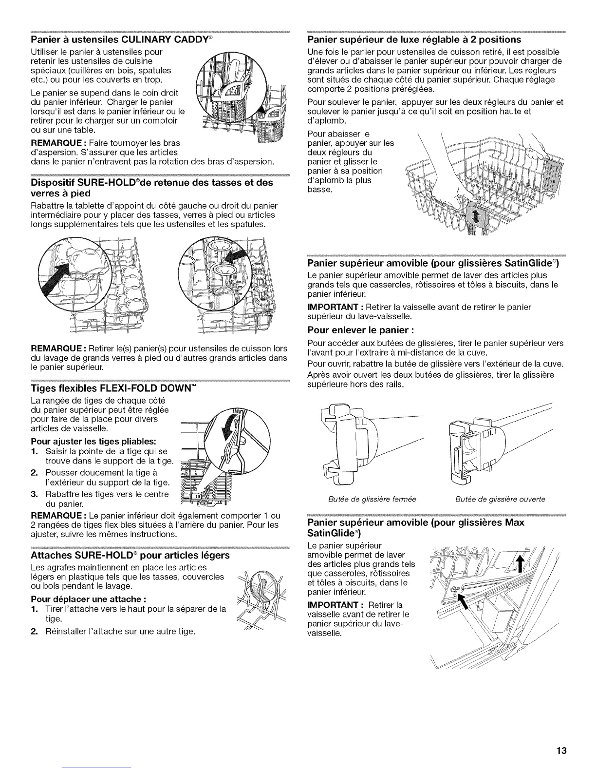 sont situ6s de chaque c6te du panier superieur. Chaque reglage