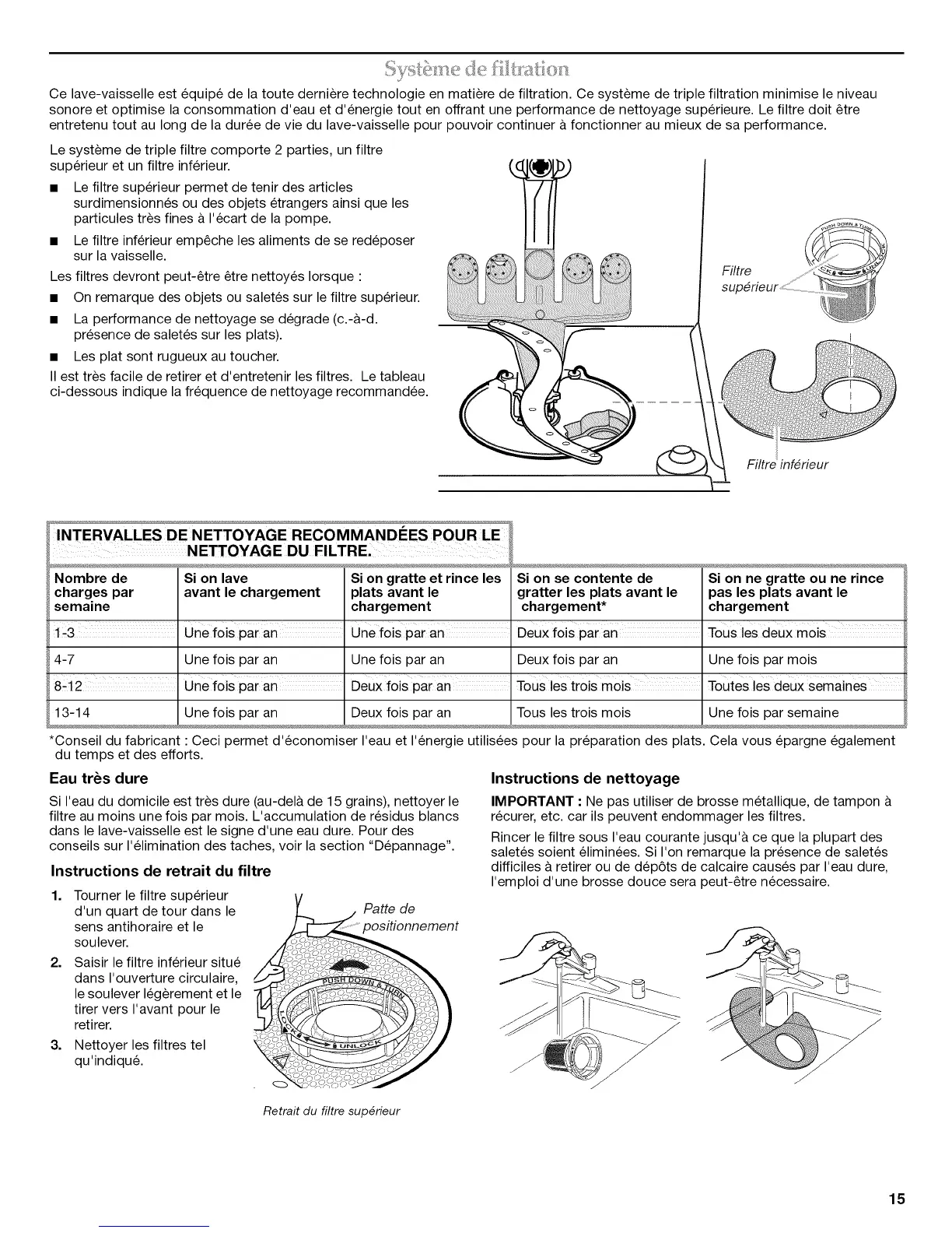 sonore et optimise la consommation d'eau et d'energie tout en offrant une performance de nettoyage superieure. Le filtre doit _tre