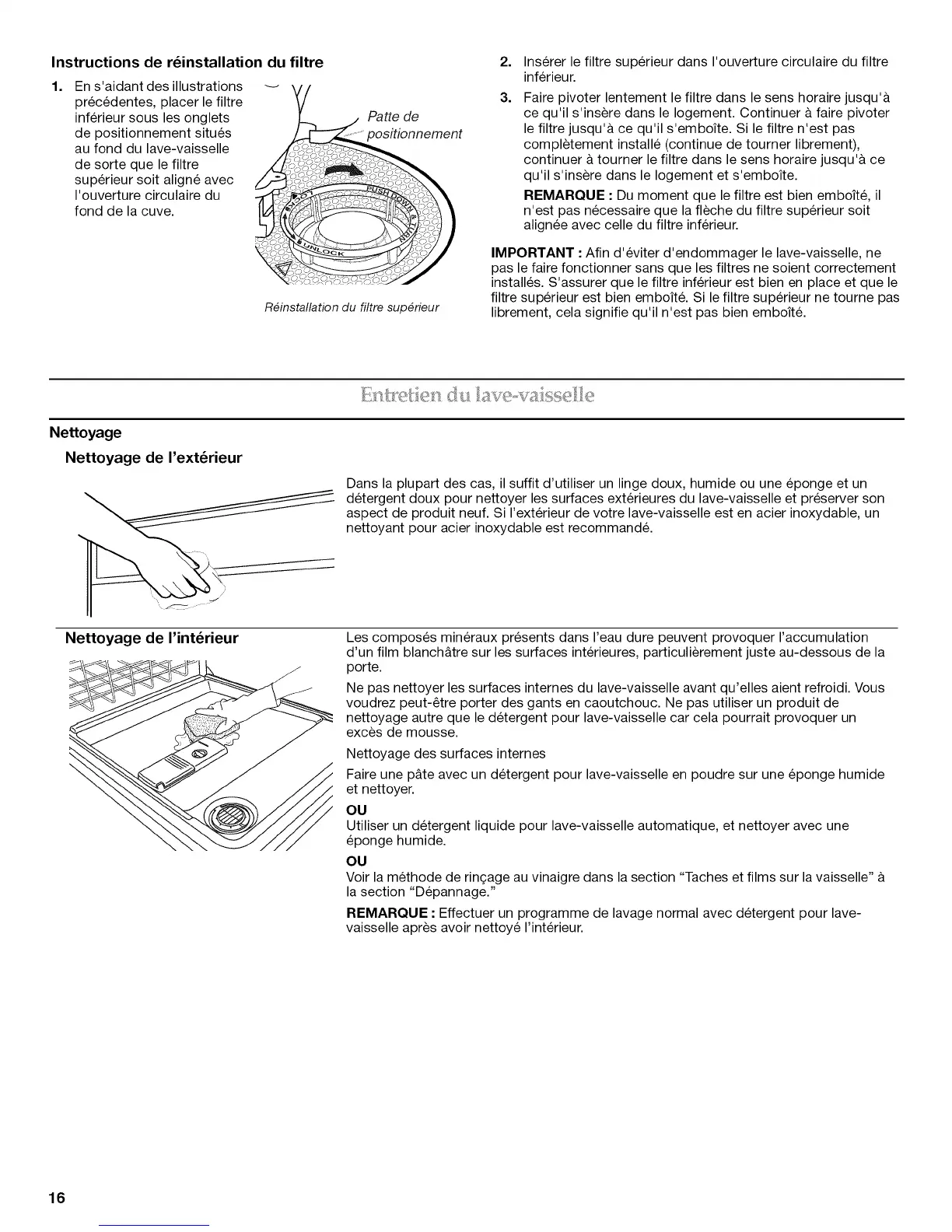 IMPORTANT : Afin d'eviter d'endommager le lave-vaisselle, ne
