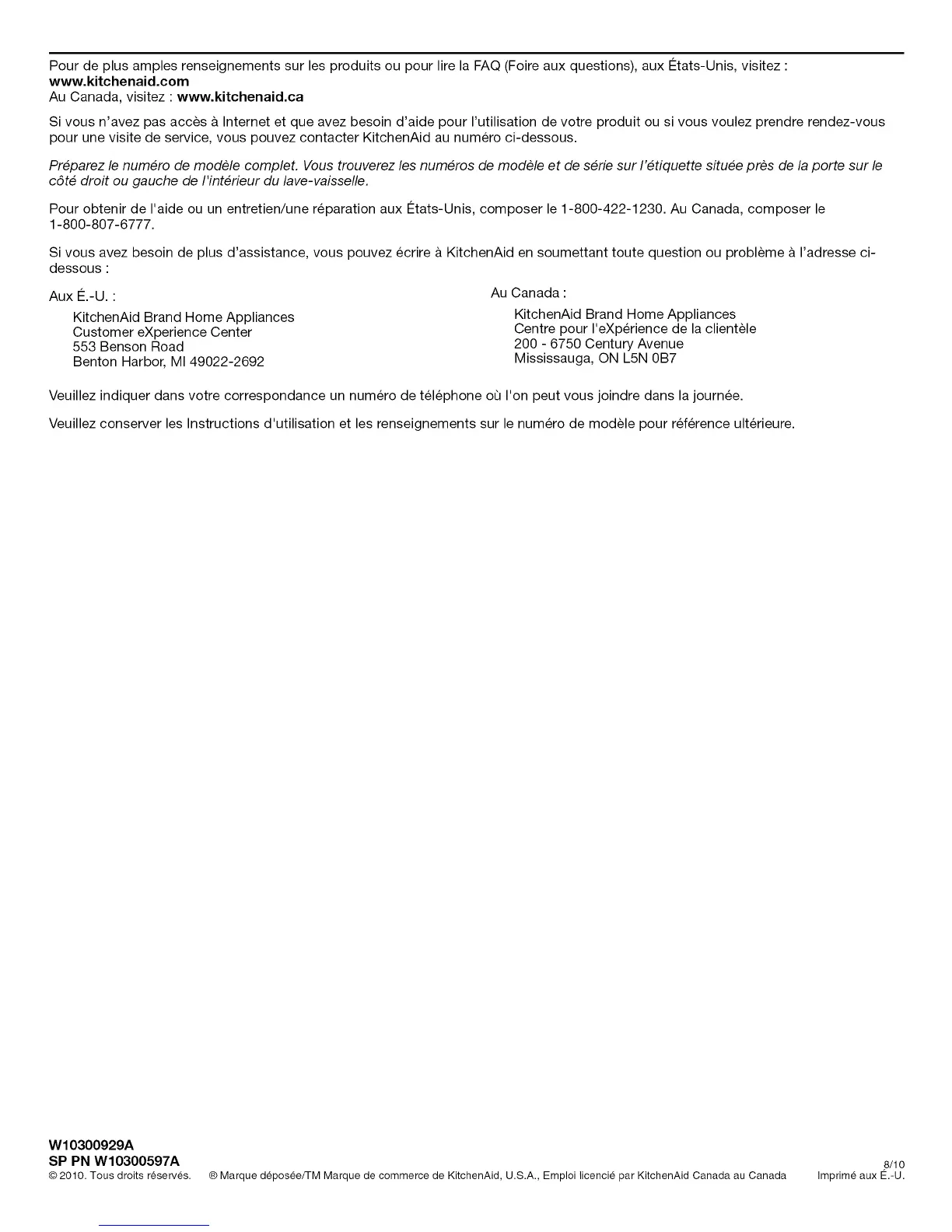 © 2010. Tous droits reserves. ® Marque deposee/TM Marque de commerce de KitchenAid, U.S.A., Emploi licencie par KitchenAid Canada au Canada