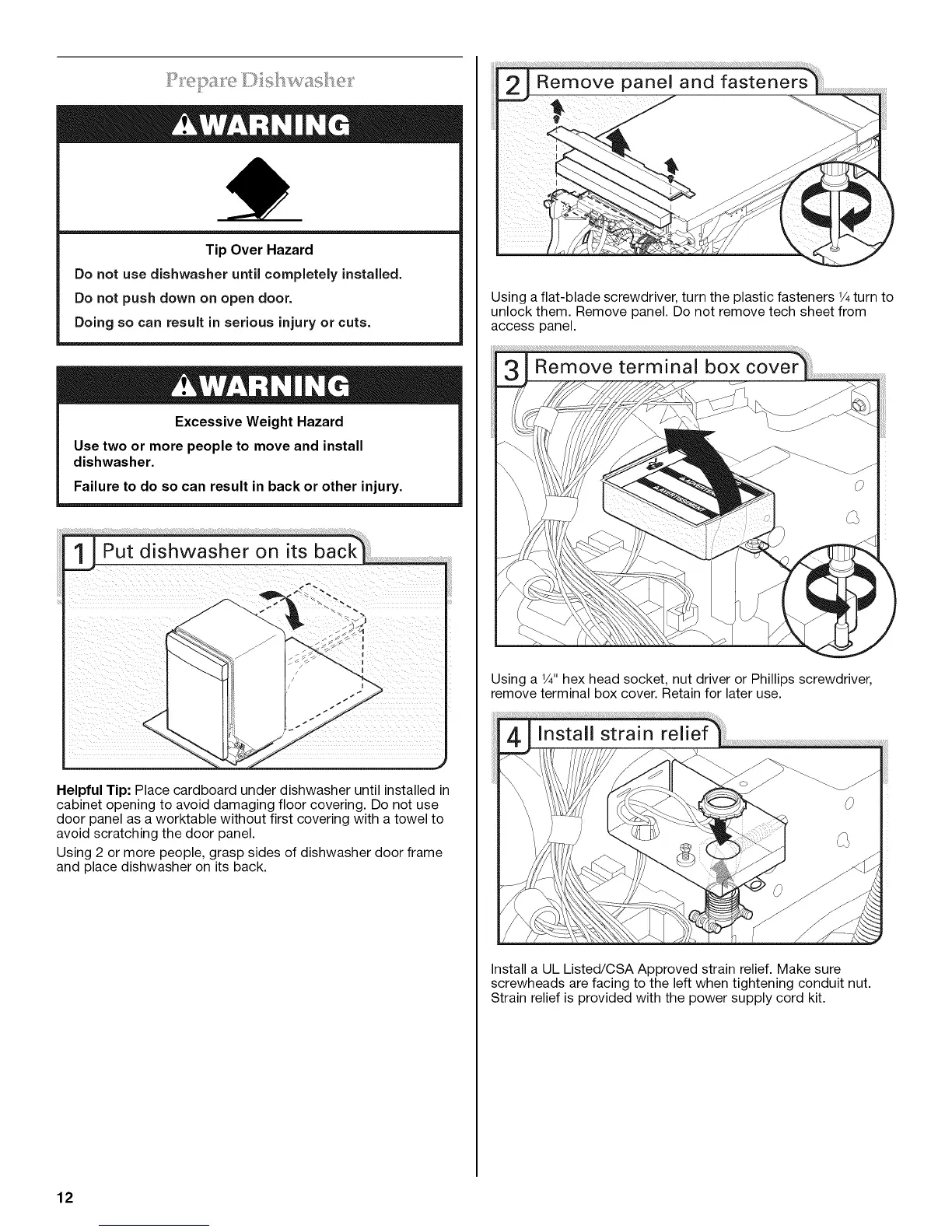 Helpful Tip: Place cardboard under dishwasher until installed in