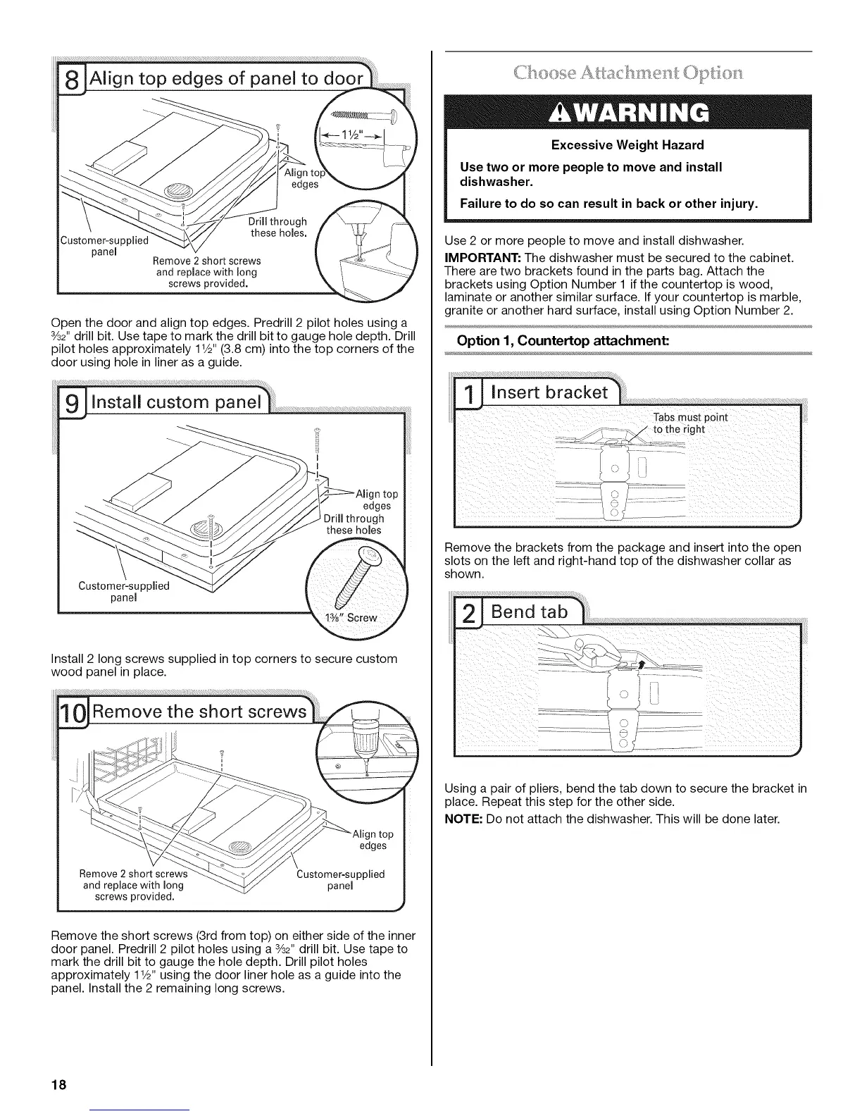 brackets using Option Number 1 if the countertop is wood,