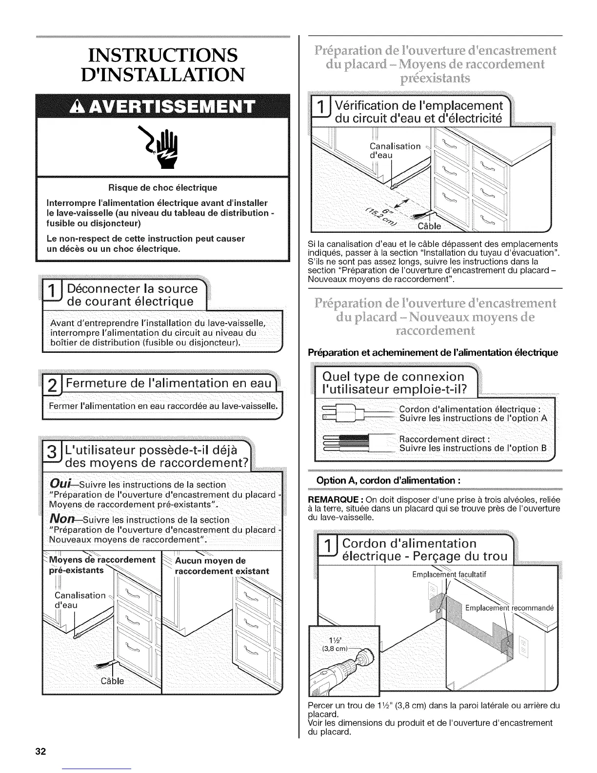 indiqu6s, passer & la section "Installation du tuyau d'evacuation".