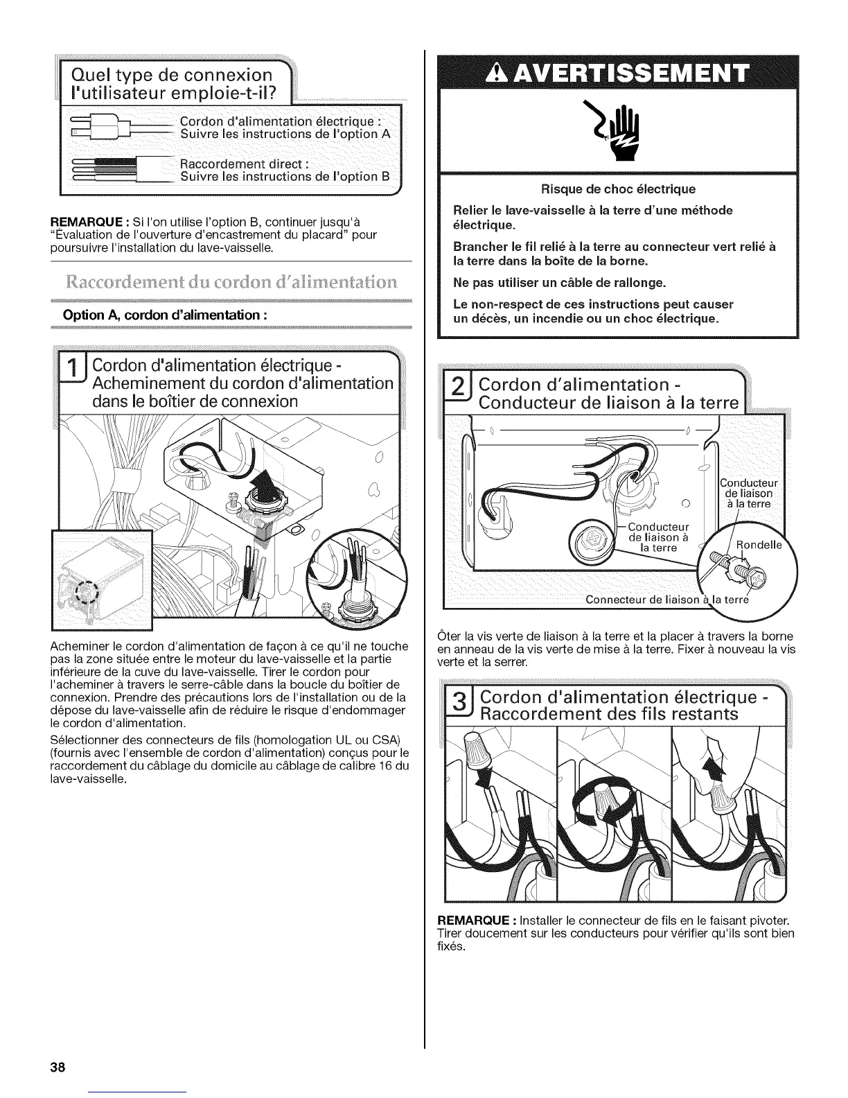 connexion. Prendre des precautions Iors de I'installation ou de la