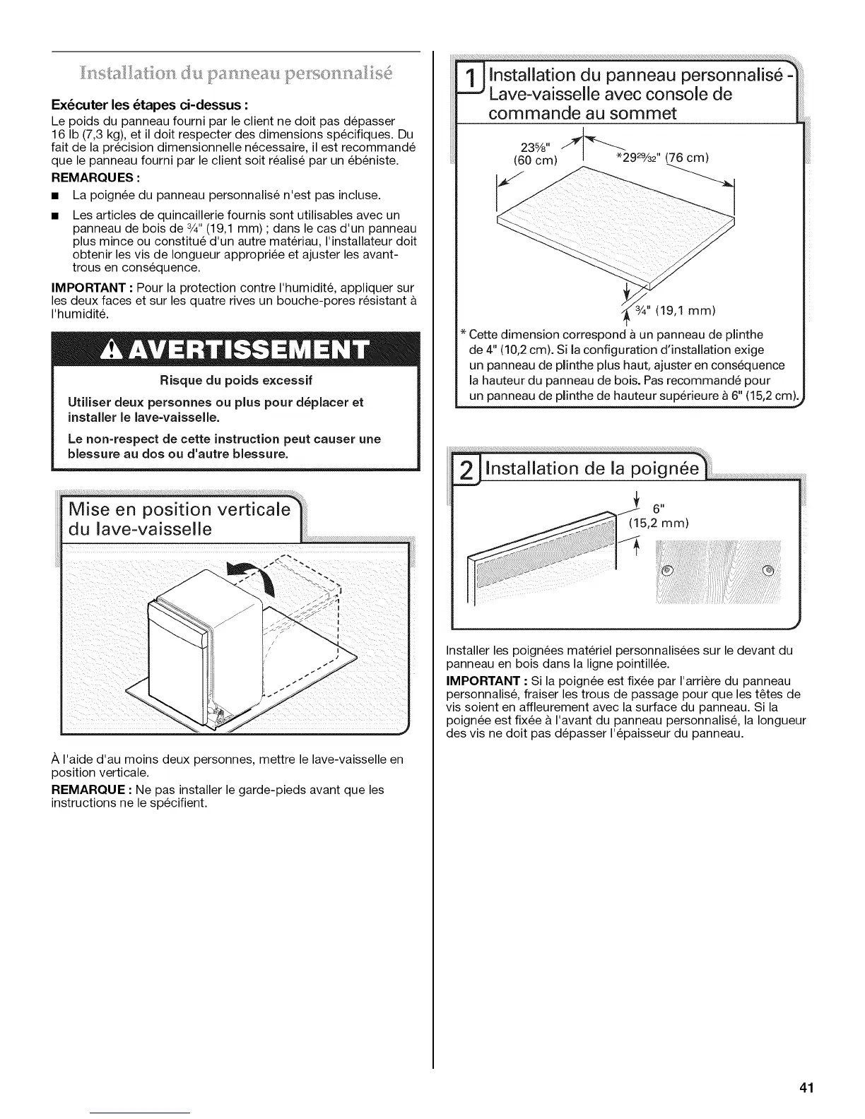 un panneau de plinthe de hauteur sup6rieure a 6" (15,2 cm).