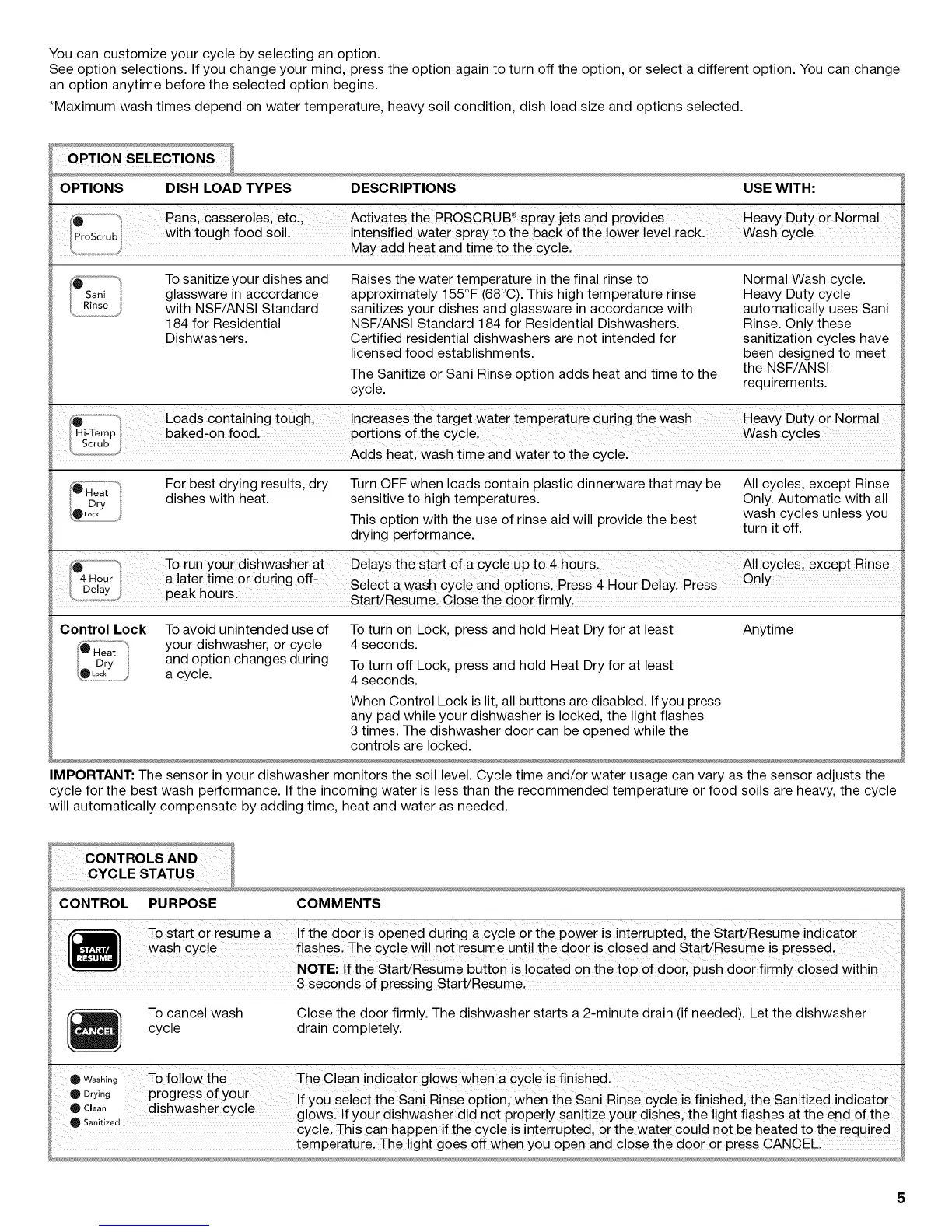 IMPORTANT: The sensor in your dishwasher monitors the soil level• Cycle time and/or water usage can vary as the sensor adjusts the