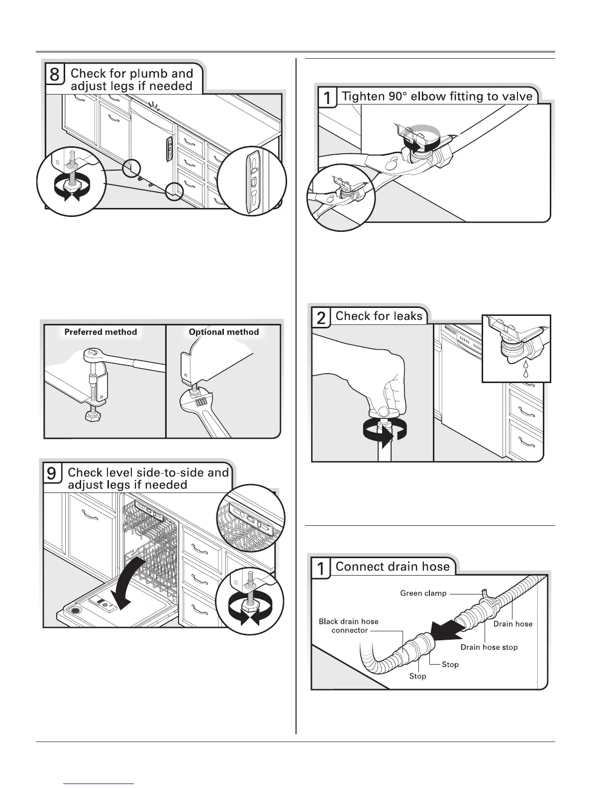 needed, adjust leveling leg until dishwasher is plumb. Repeat for