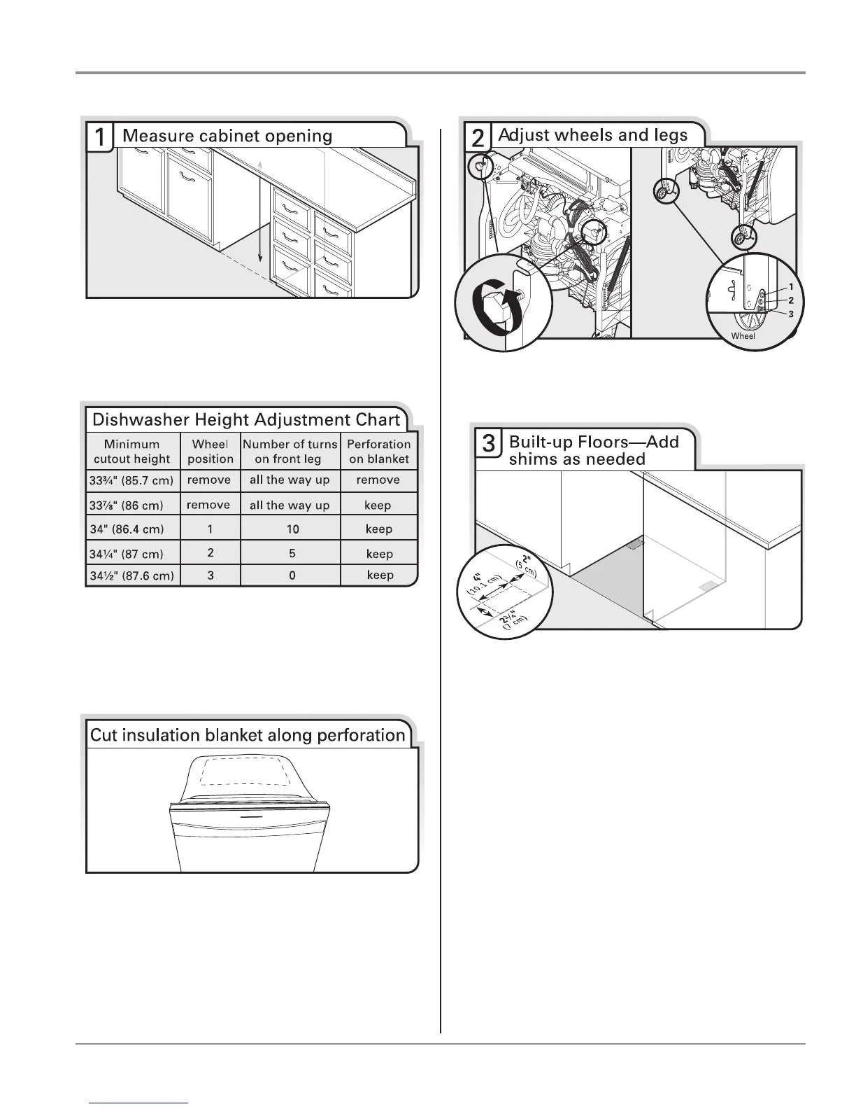 shown to bring the dishwasher up to 34" (86.4 cm) below the
