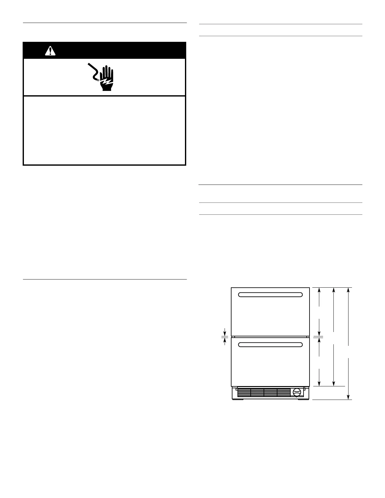 de 1" (25 mm) sous les tiroirs réfrigérés, ajouter ¾"