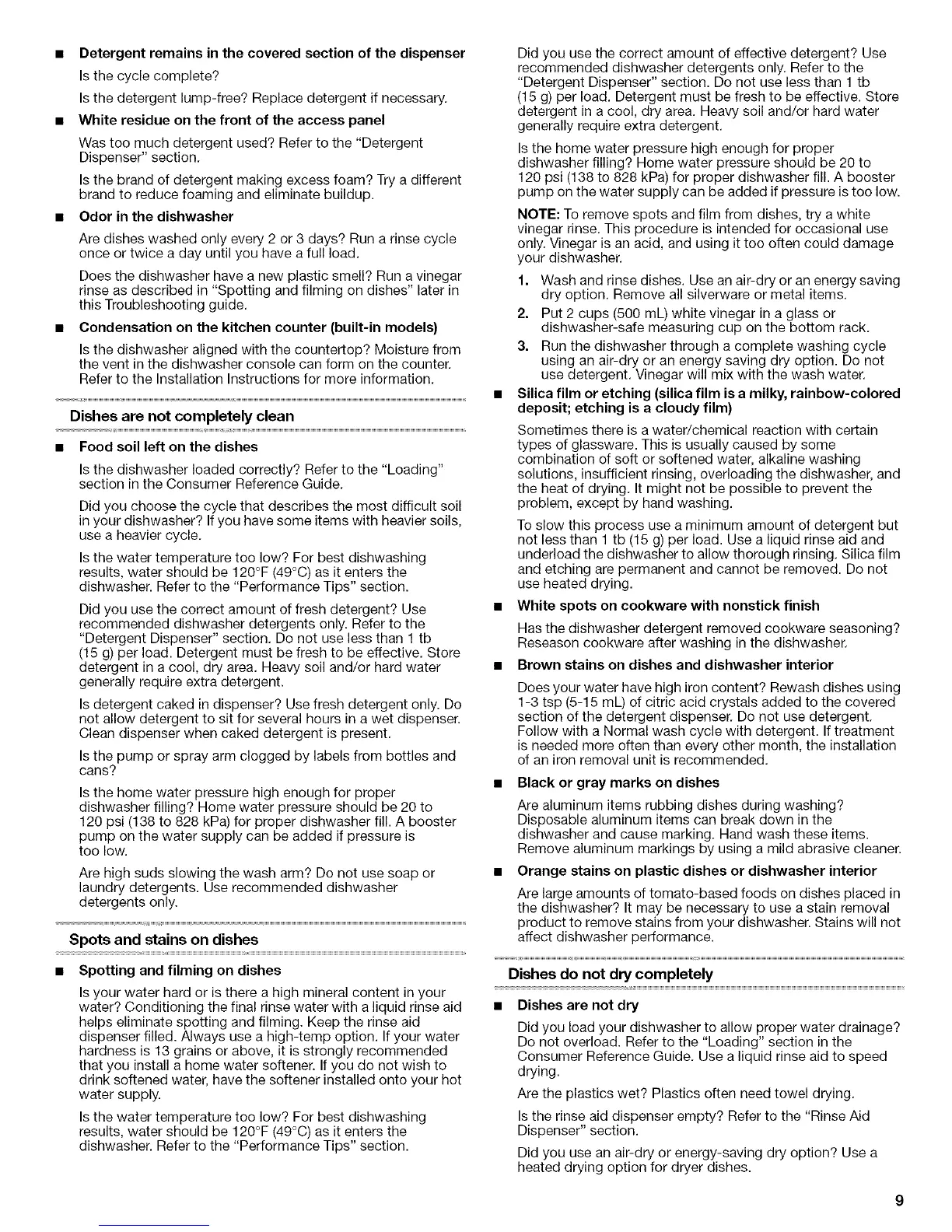 NOTE: To remove spots and film from dishes, try a white