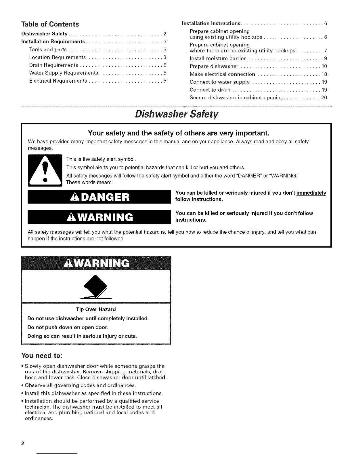 Dishwasher Safety ................................. 2