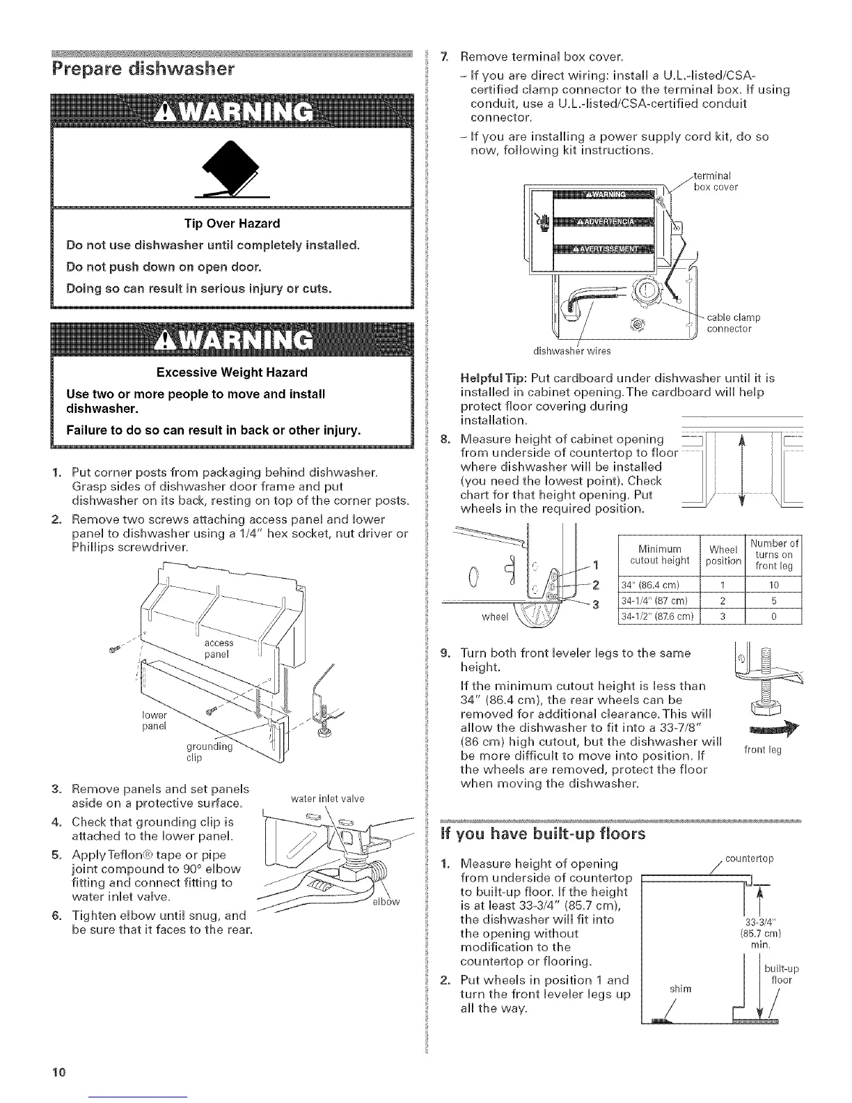 (86 cm) high cutout, but the dishwasher will