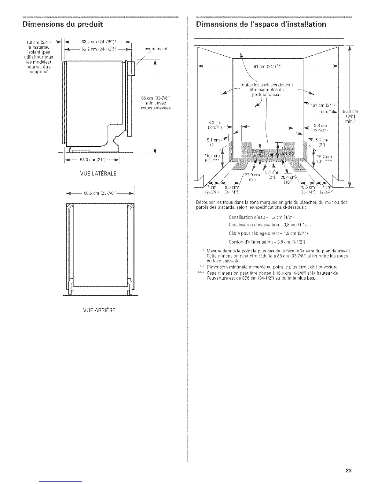 Cette dimension peut 6tre reduite a 86 cm (33-7/8") s[ on retire les roues