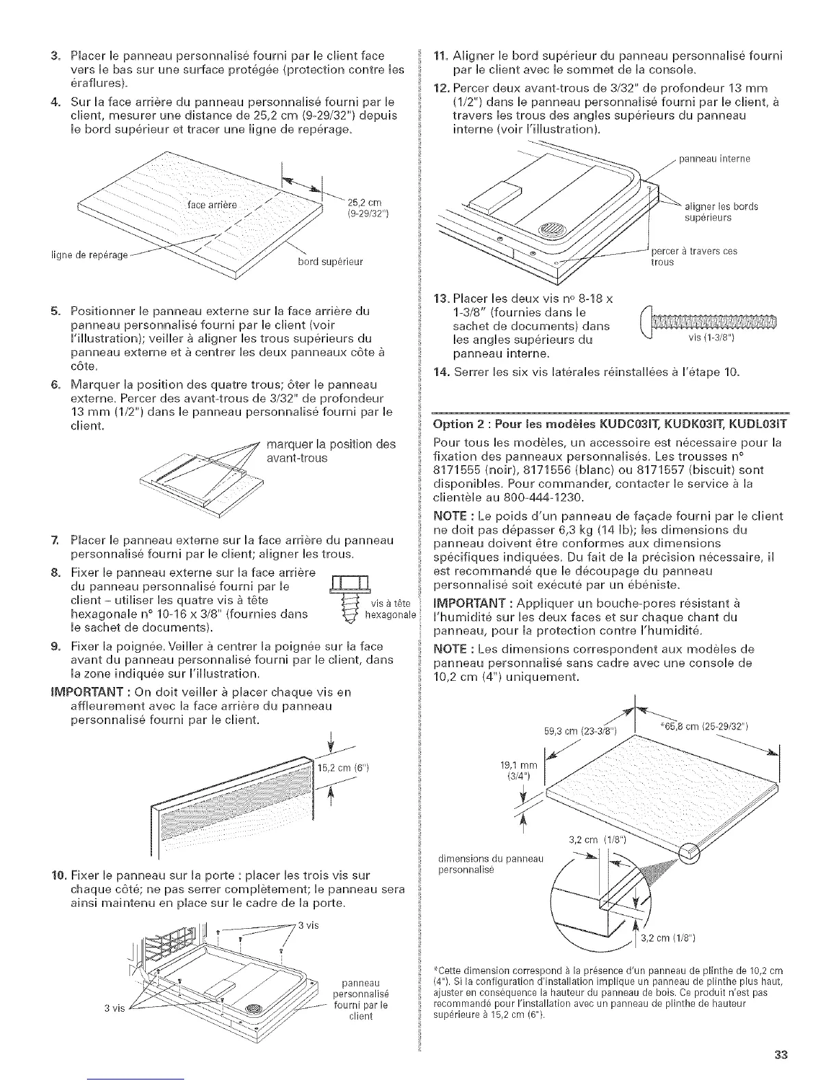 13 mm (1/2") dans le panneau personnalise fourni par le
