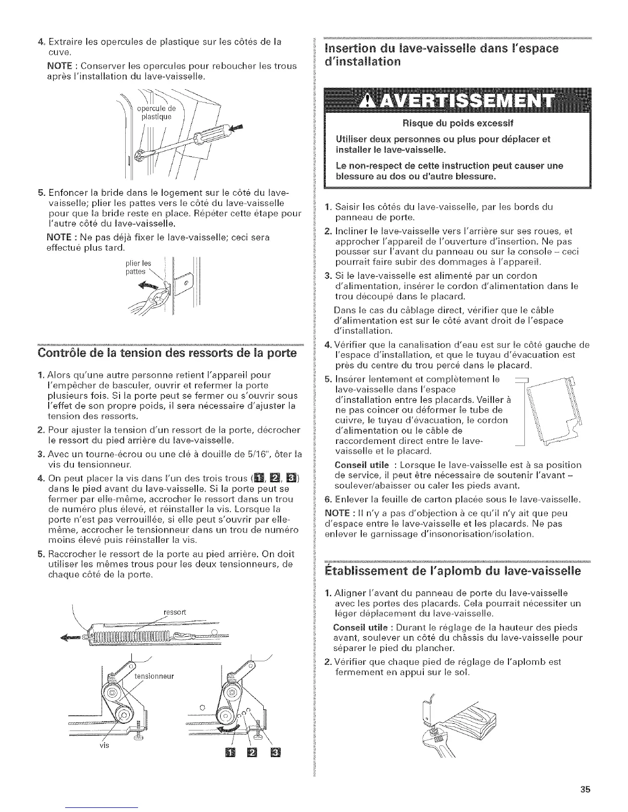 dans le pied avant du lave-vaisselle. Si la porte peut se