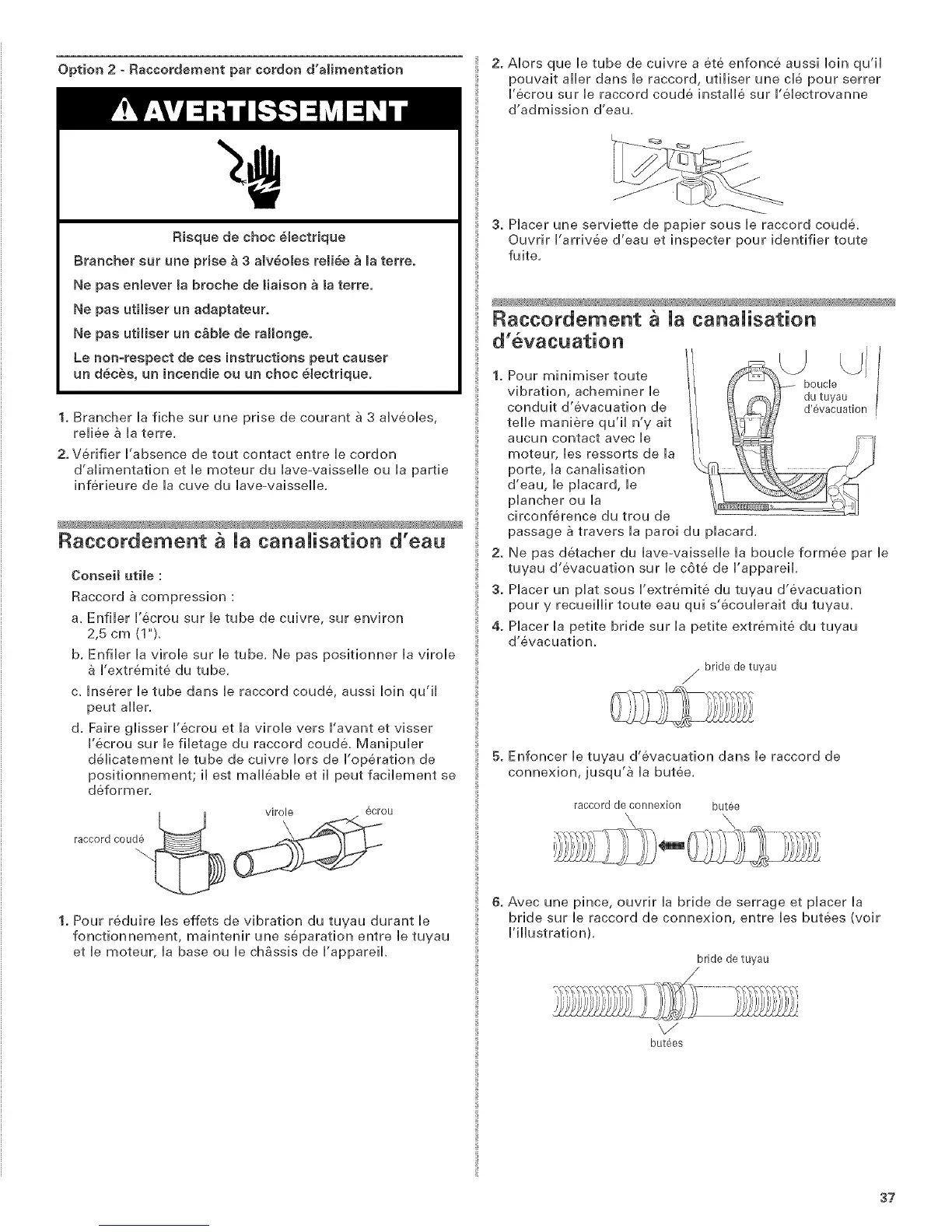 2. Ne pas detacher du laveovaisselle la boucle formee par le
