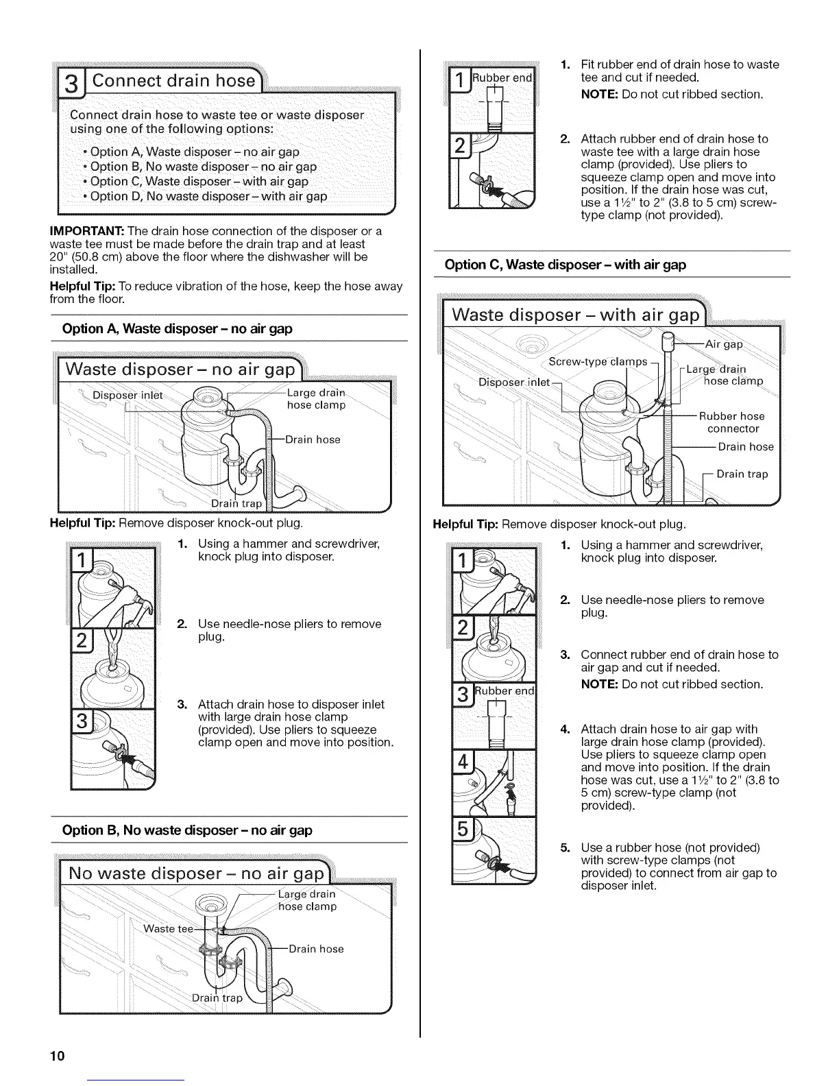 Attach drain hose to air gap with