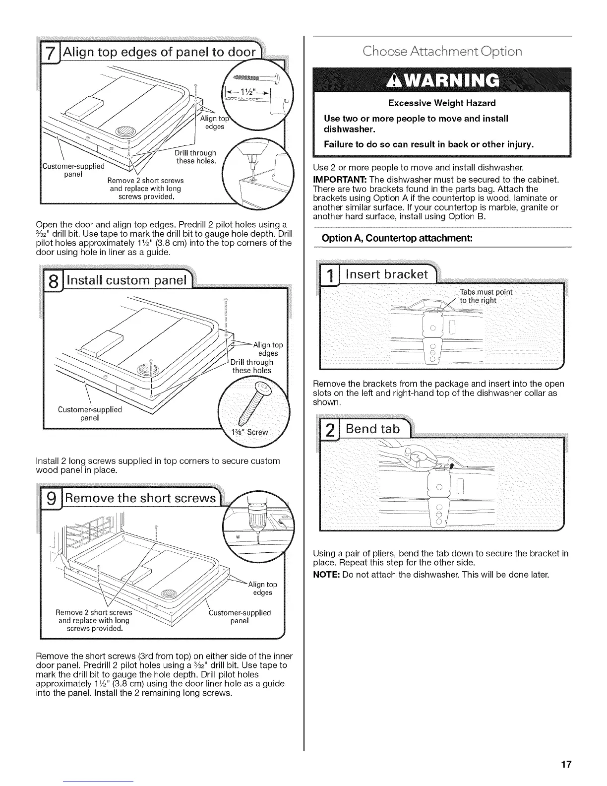 brackets using Option A if the countertop is wood, laminate or