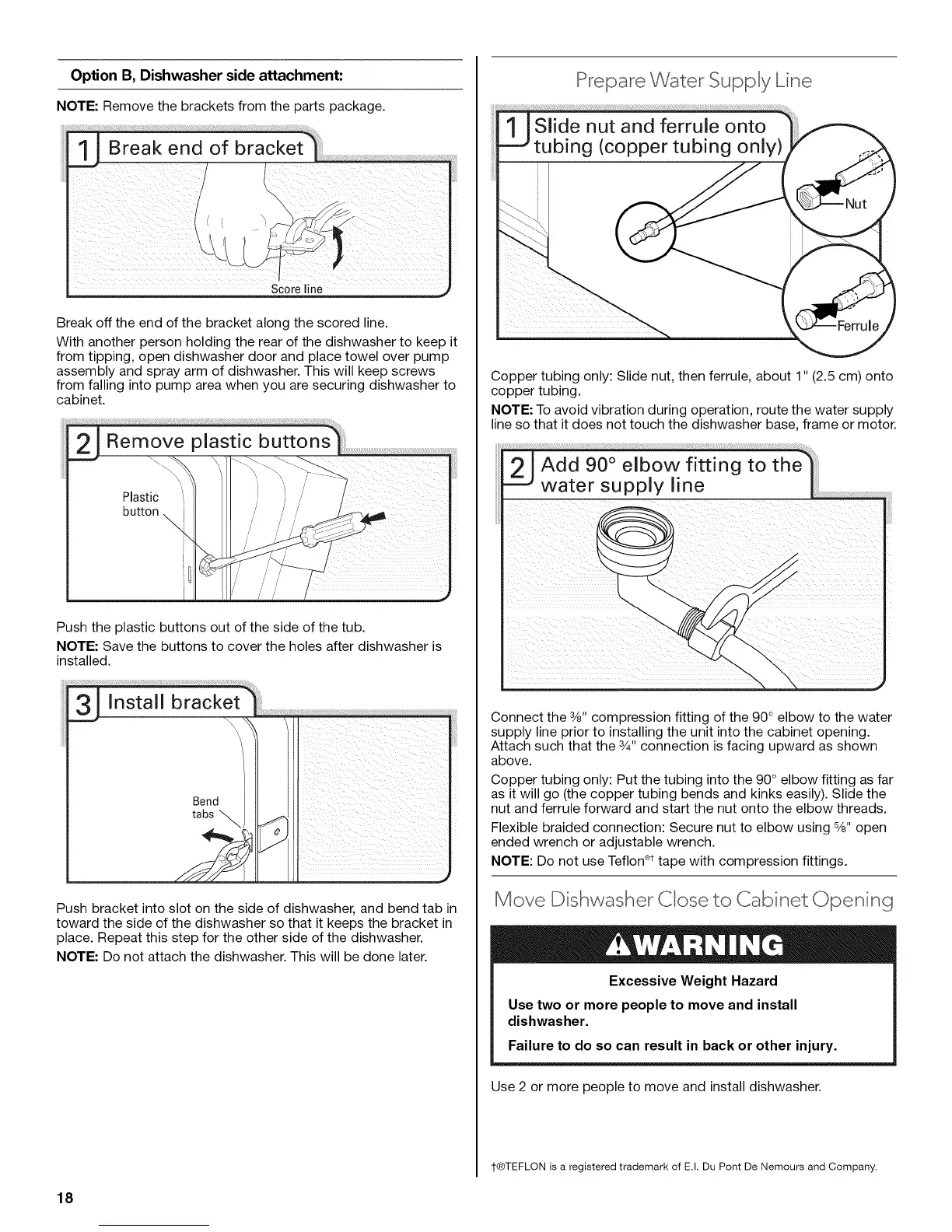 Use 2 or more people to move and install dishwasher.